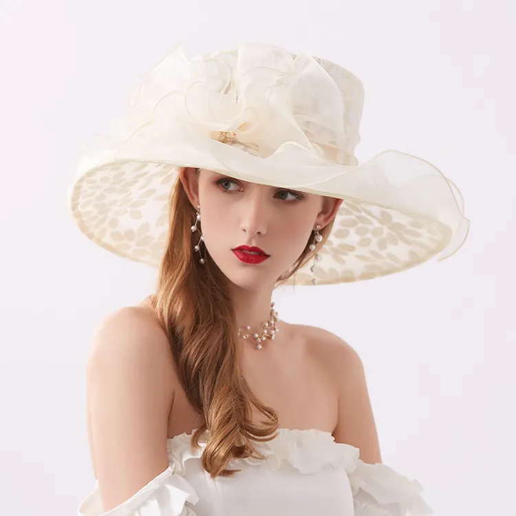 衣都精品- 2023新款歐美氣質花朵婚紗防曬禮帽
