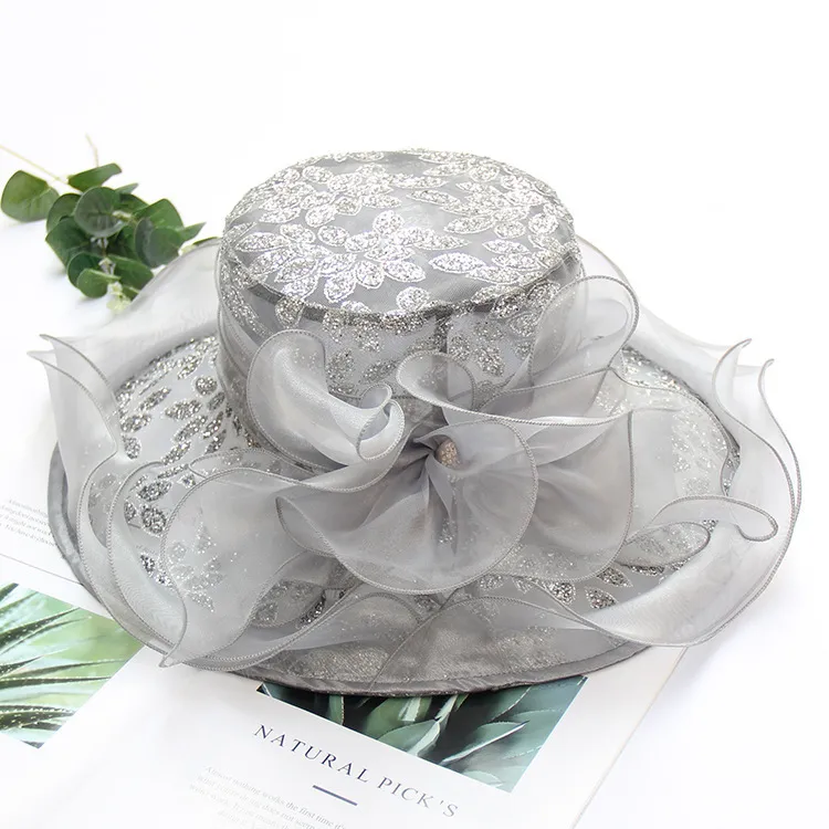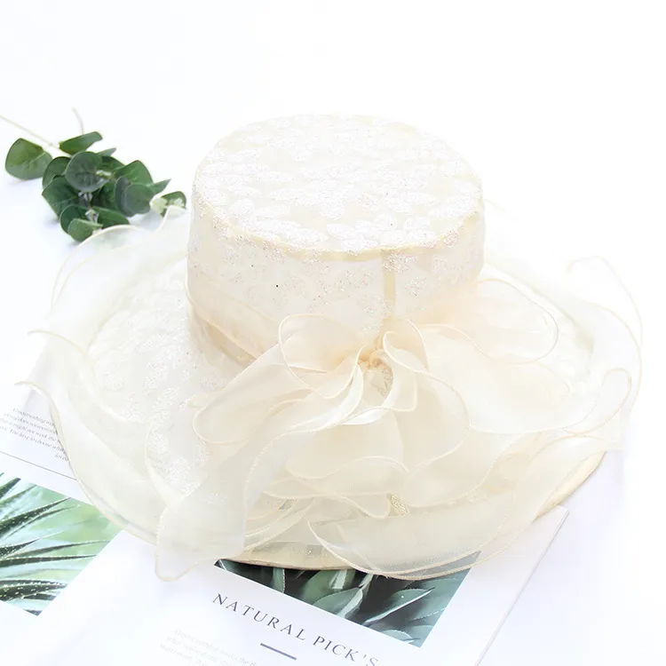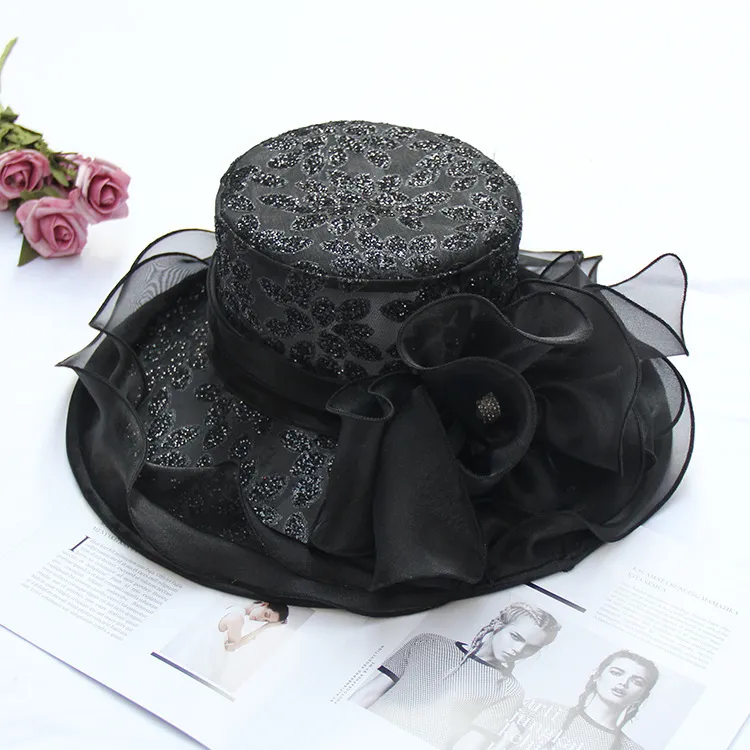 衣都精品- 2023新款歐根紗燙鑽花朵遮陽涼帽