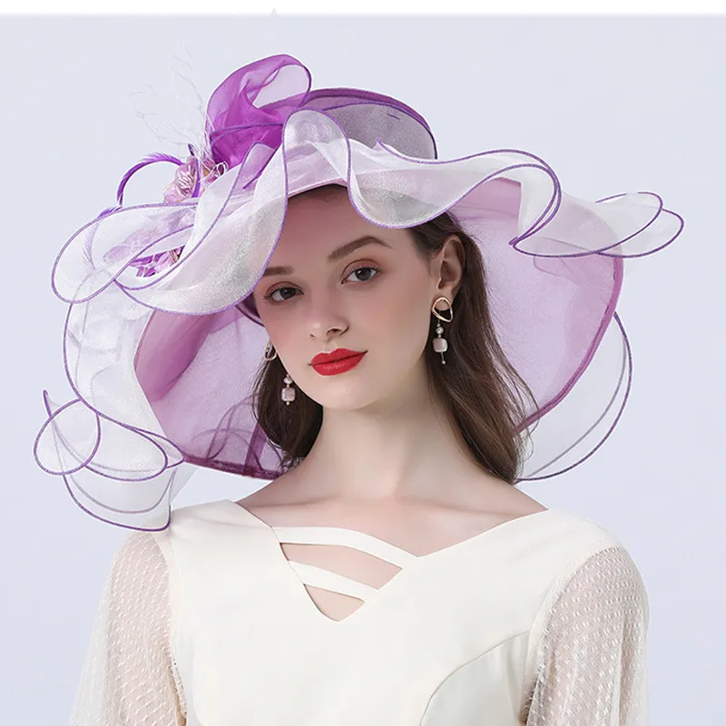 衣都精品- 2023新款韓版休閒歐根紗羽毛花遮陽帽