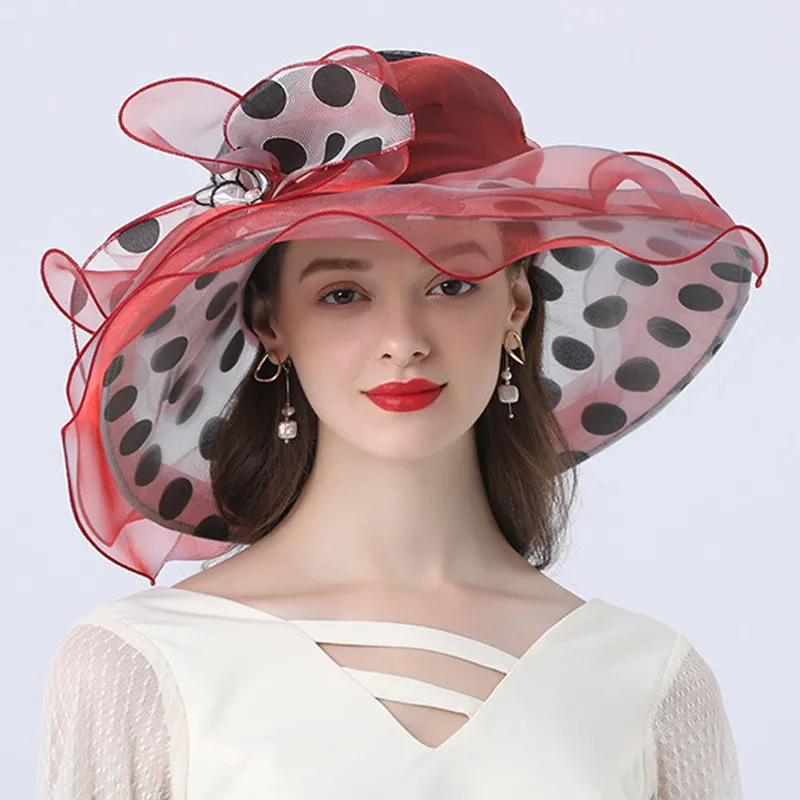 衣都精品- 2023新款歐美波點裝飾大簷遮陽帽