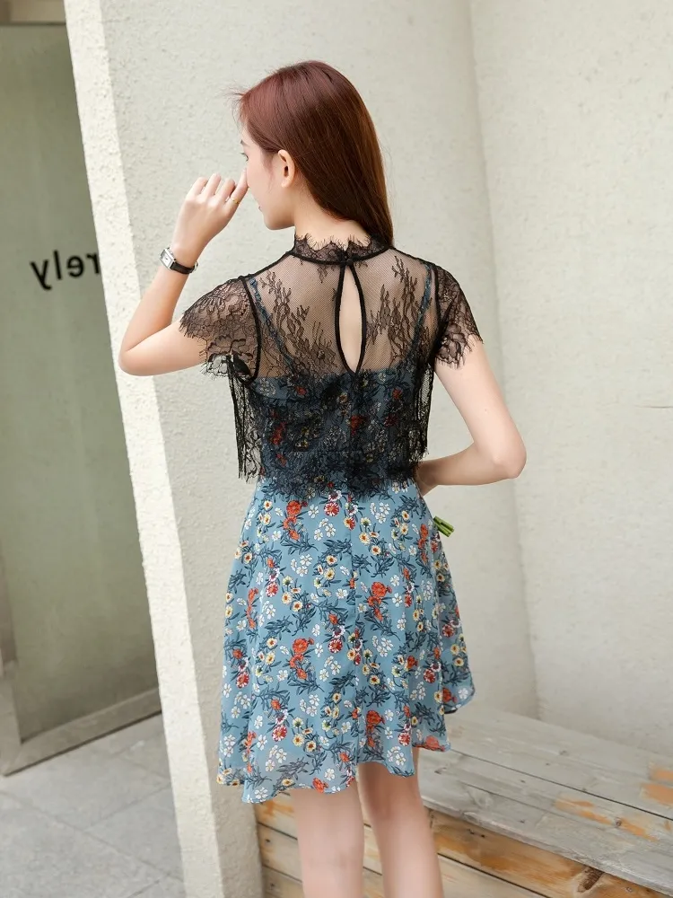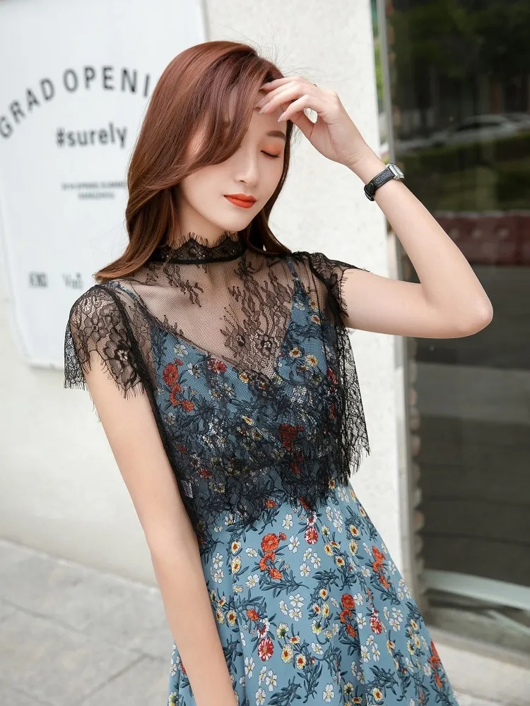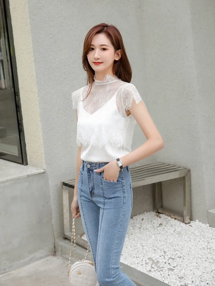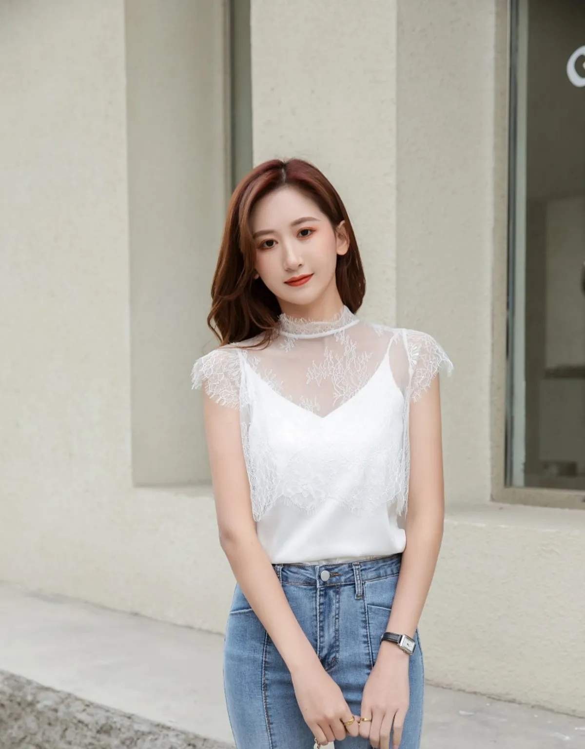 衣都精品- 2023新款外搭立領短袖蕾絲上衣