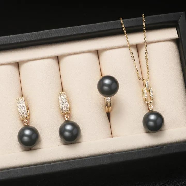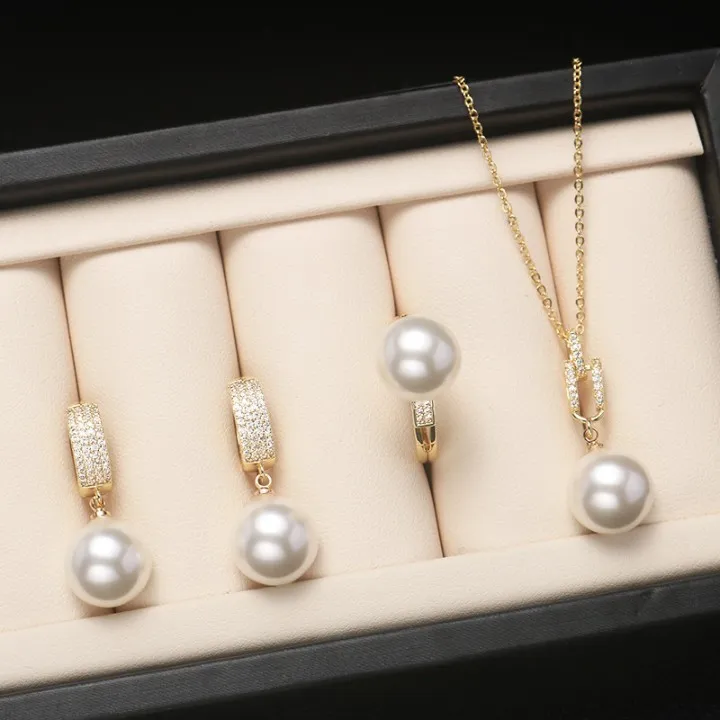 衣都精品- 2023新款時尚貝殼珍珠項鍊+戒指+耳環首飾套裝