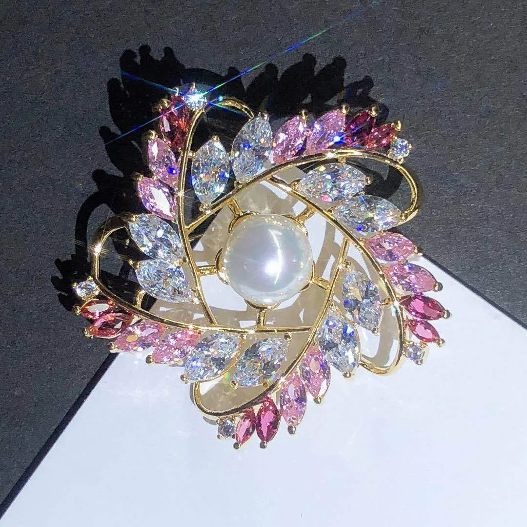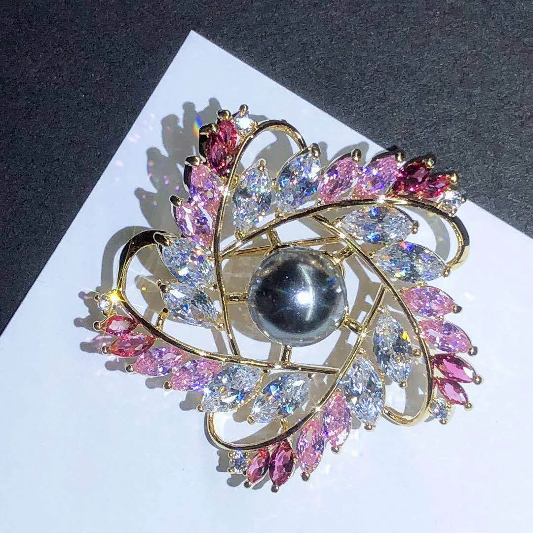 衣都精品- 2023新款時尚微鑲鋯石貝珠鏤空珍珠胸針
