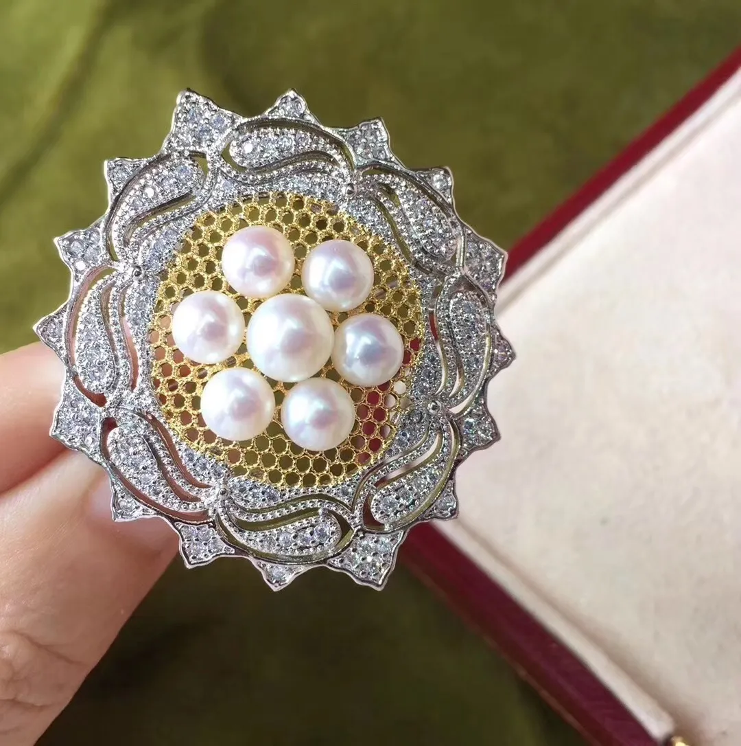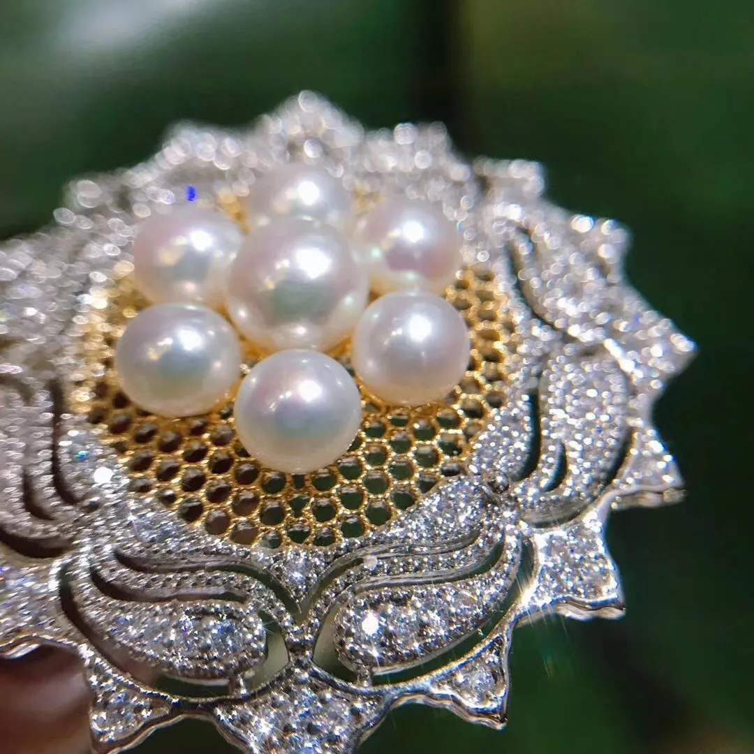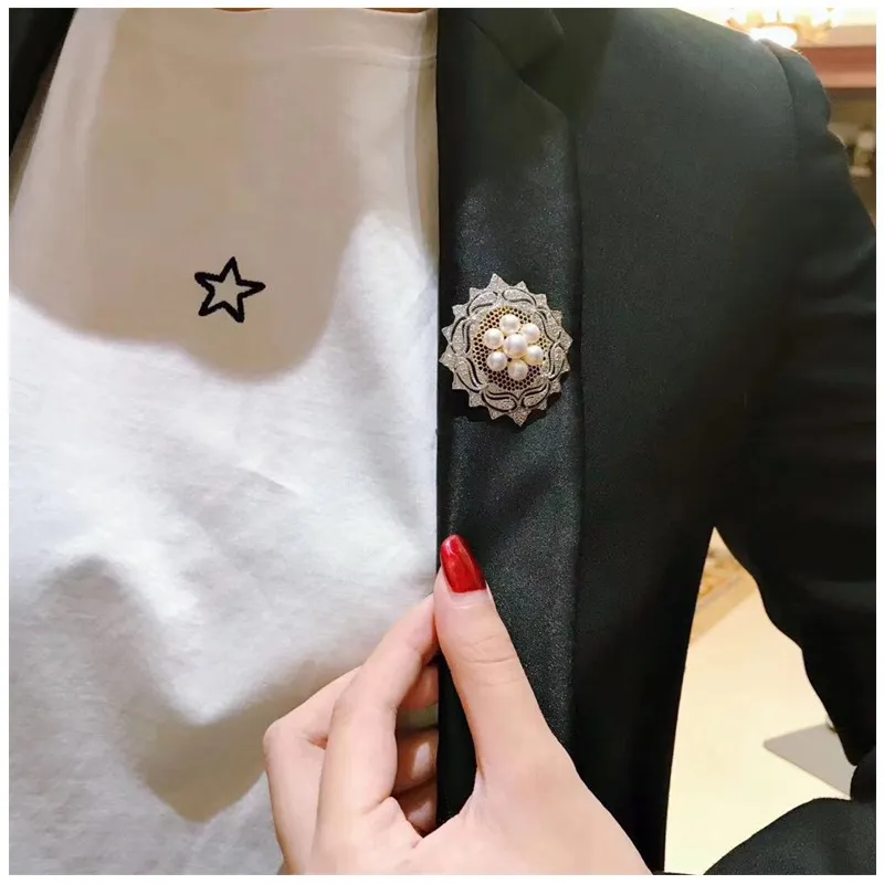 衣都精品- 2023新款時尚微鑲鋯石貝珠鏤空珍珠胸針