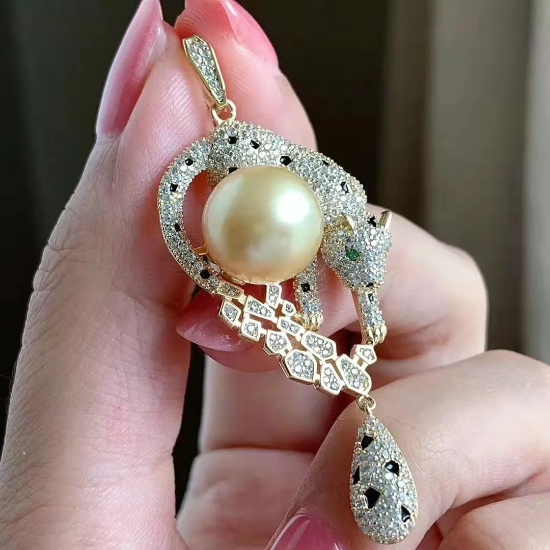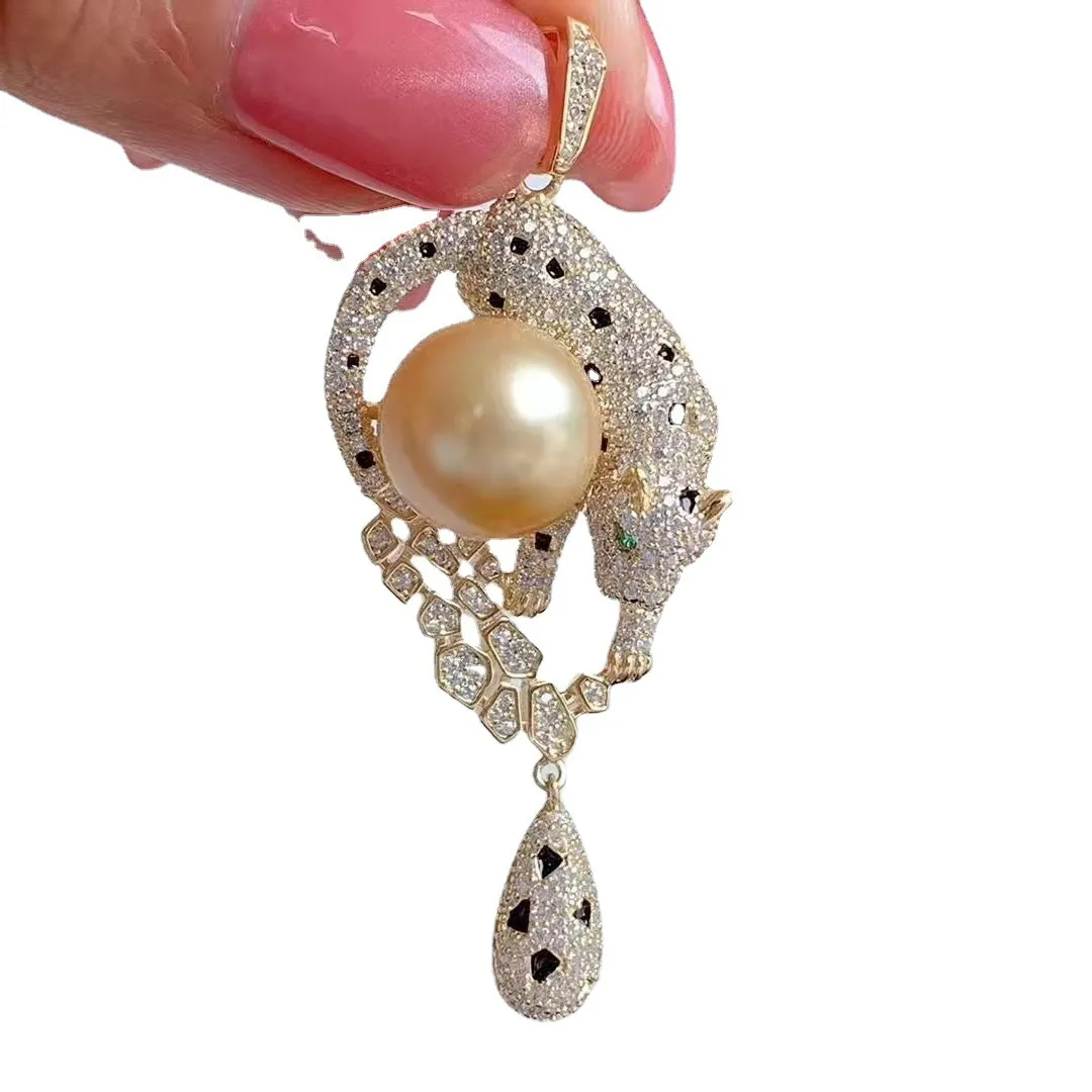 衣都精品- 2023新款時尚個性豹子珍珠胸針