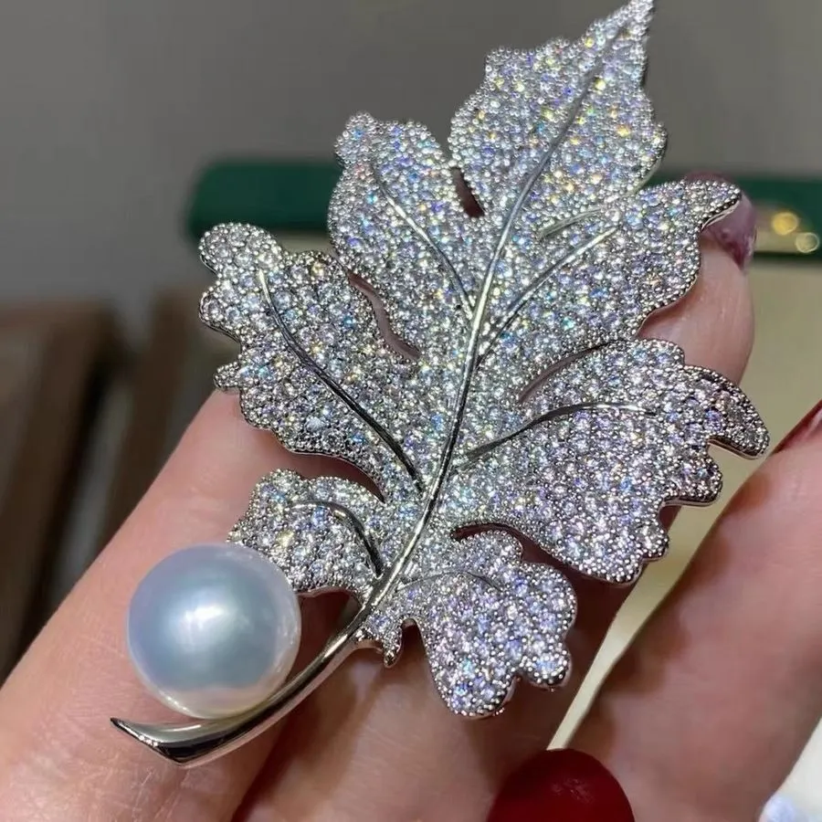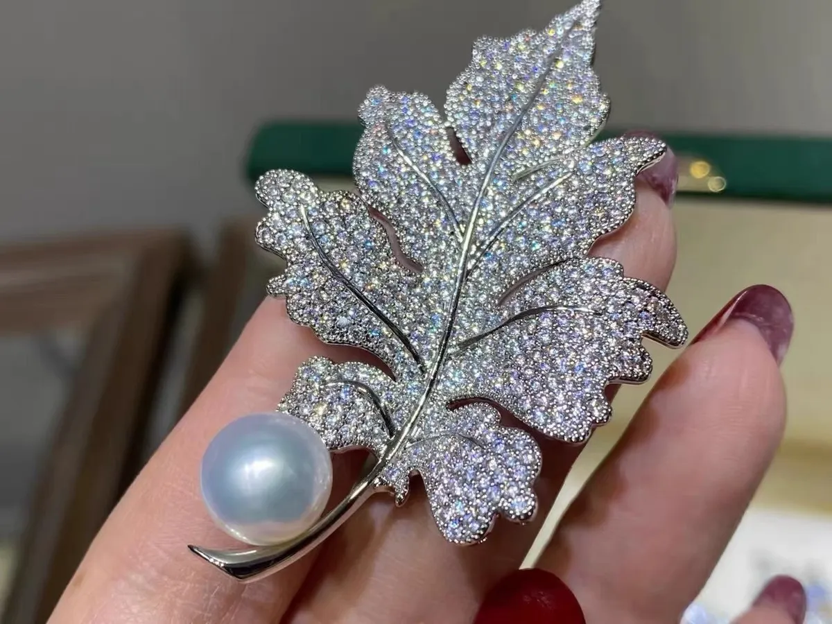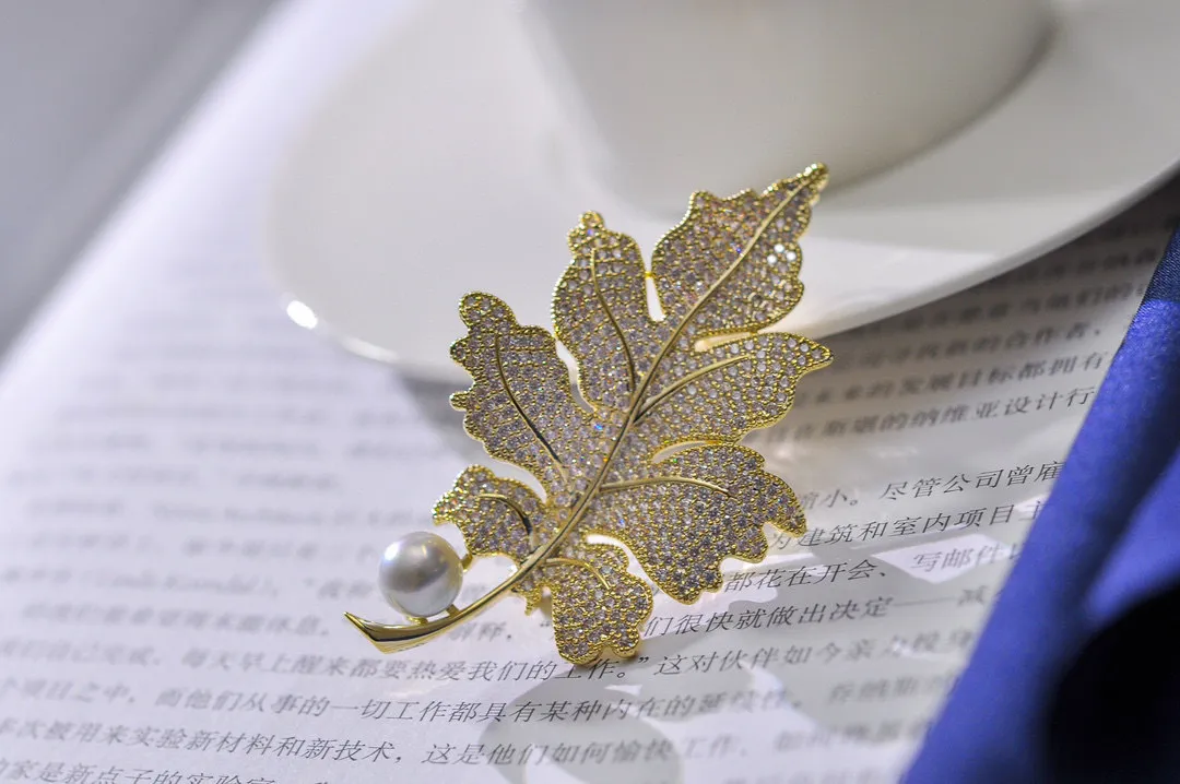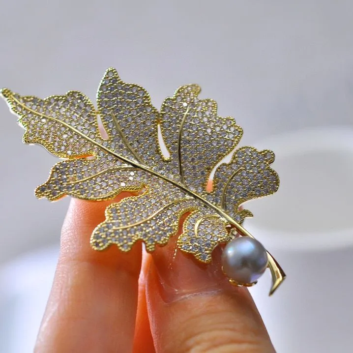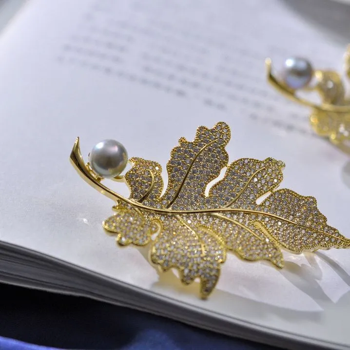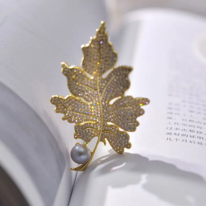 衣都精品- 2023新款時尚優雅楓葉鑲鑽珍珠胸針