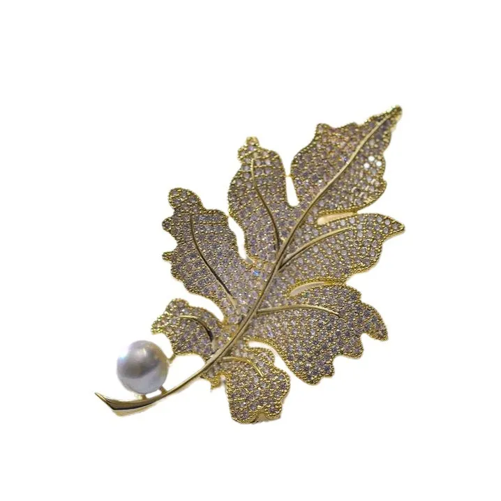 衣都精品- 2023新款優雅氣質精美葉子珍珠胸針