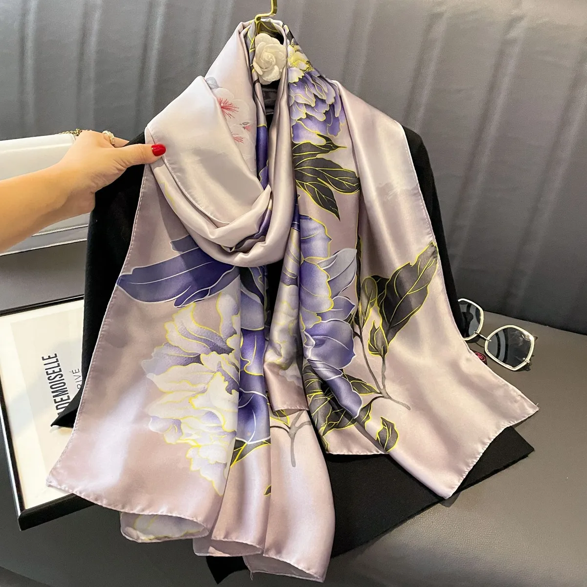 衣都精品- 2023新款牡丹花印花麗錦鍛披肩圍巾