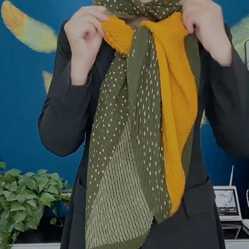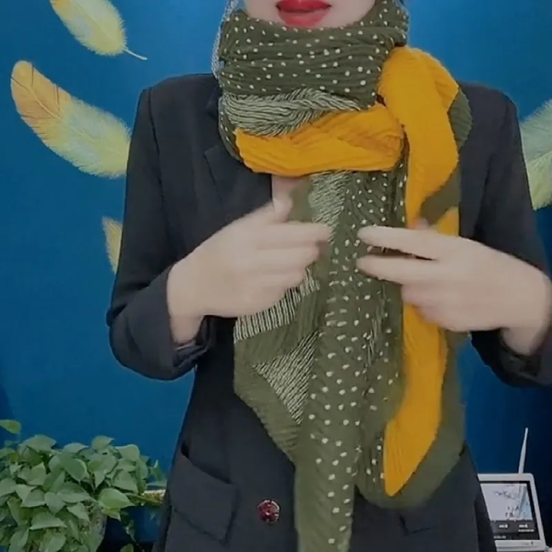 衣都精品- 2023新款韓版拼接時尚洋氣披肩褶皺圍巾