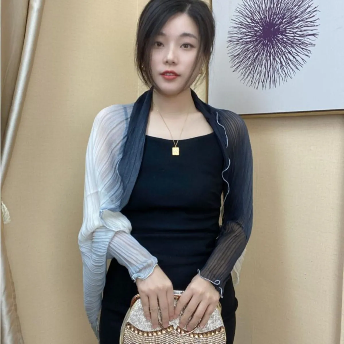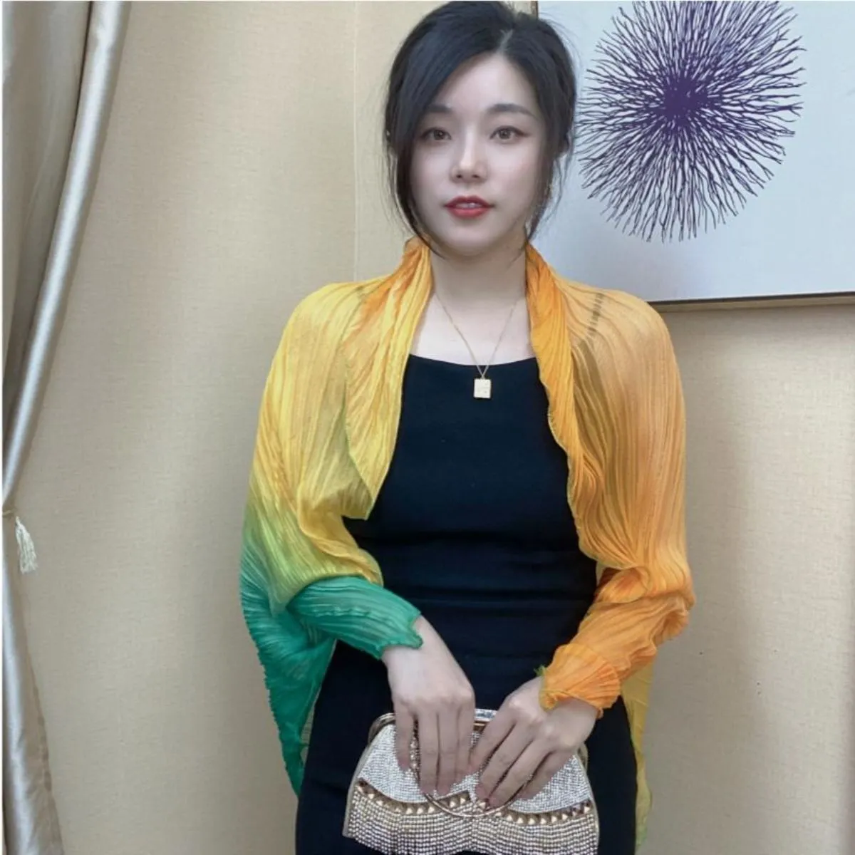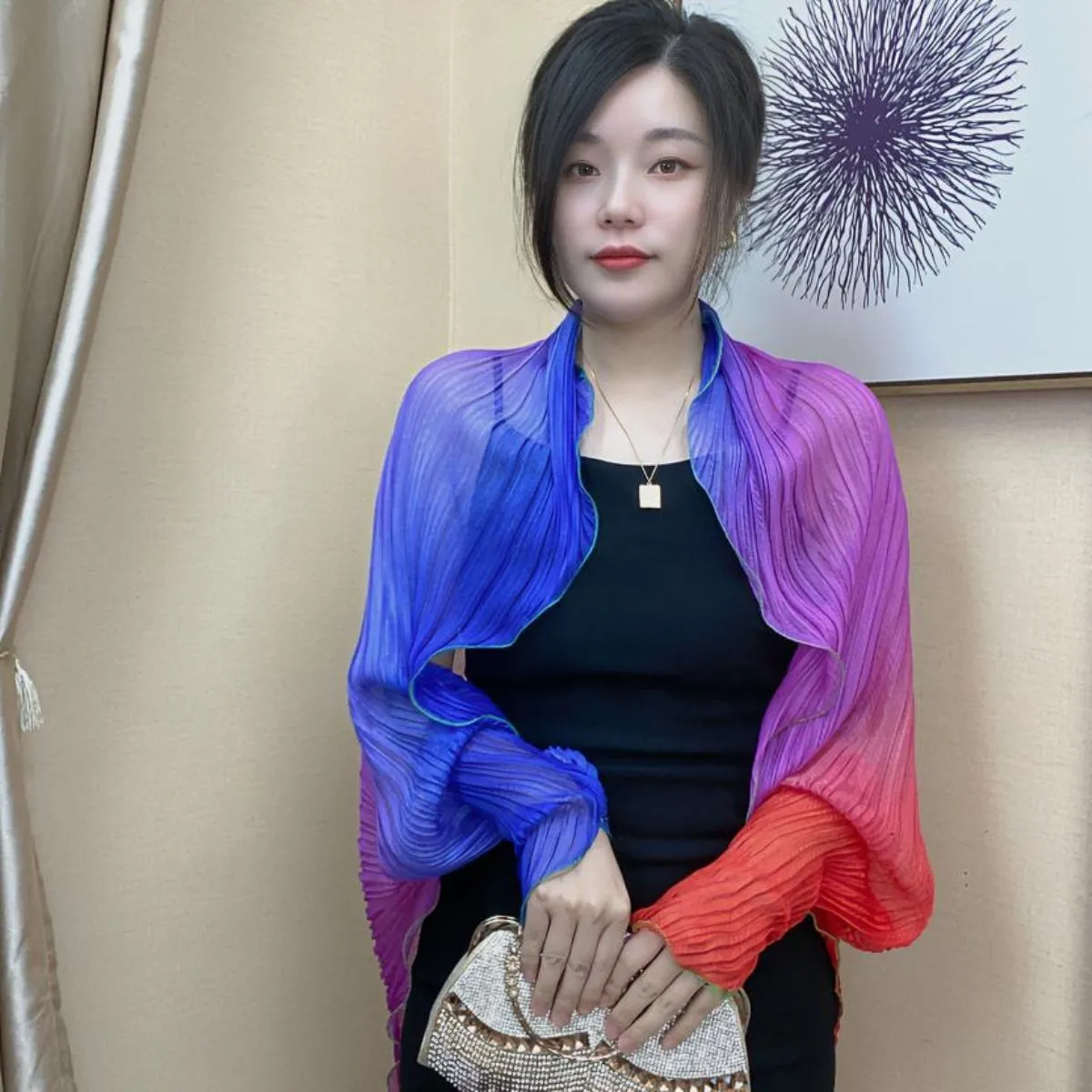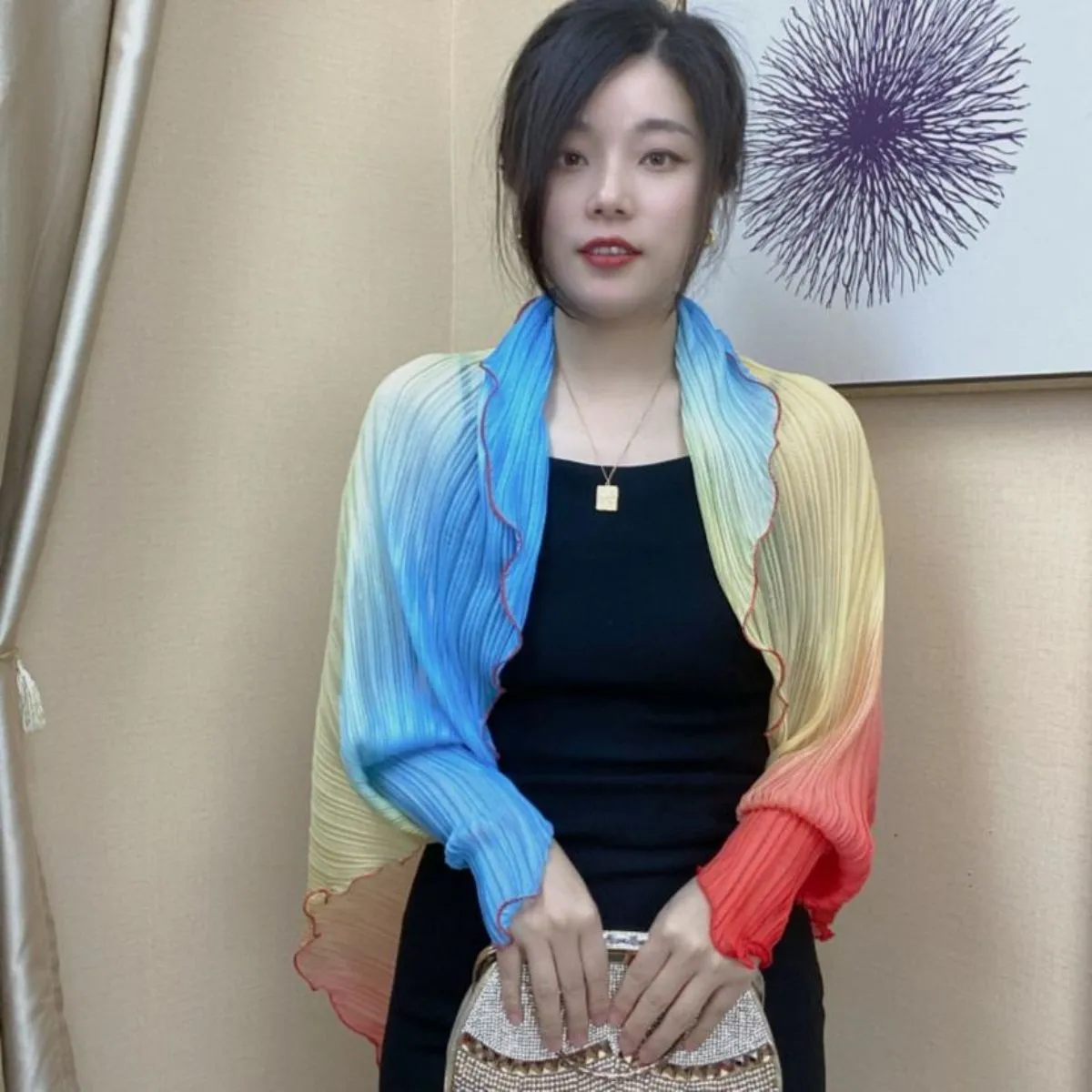 衣都精品- 2023新款韓版拼接時尚洋氣披肩褶皺圍巾