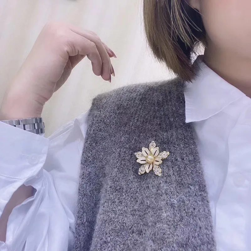 衣都精品- 2023新款韓國時尚精製鍍金雪花胸針