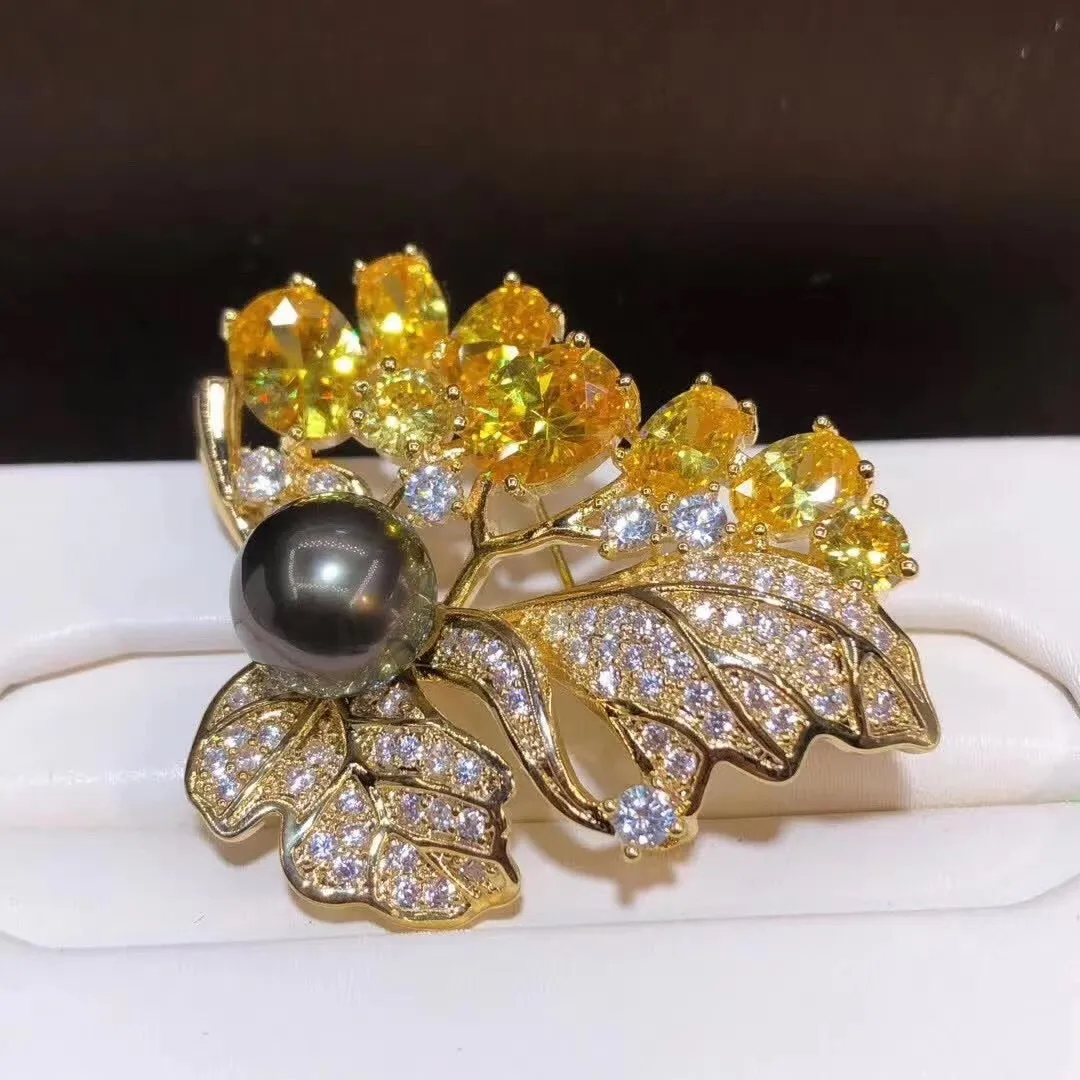 衣都精品- 2023新款韓國時尚精製微鑲金鋯葉胸針