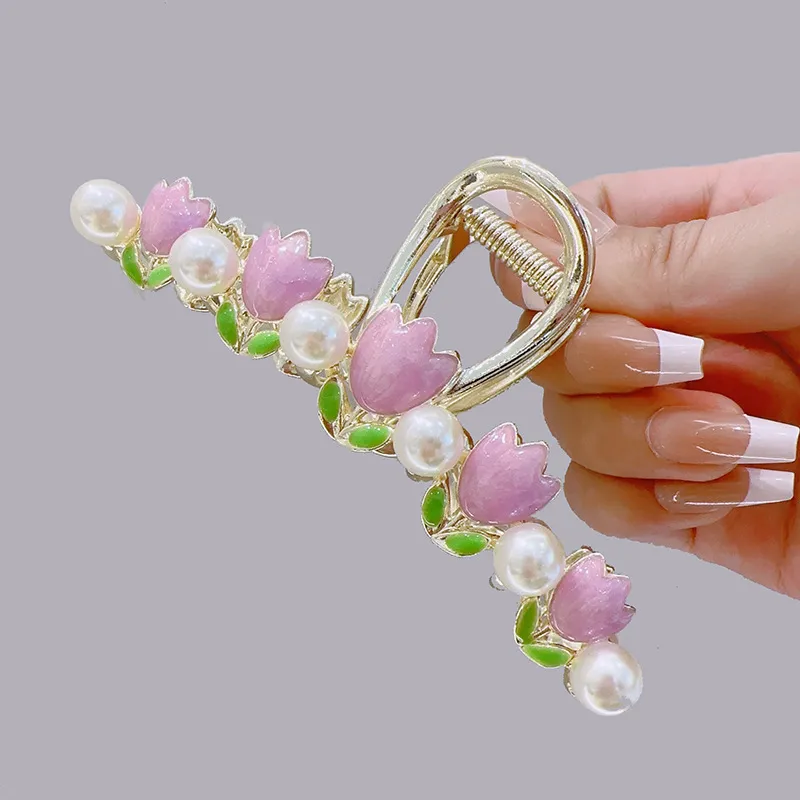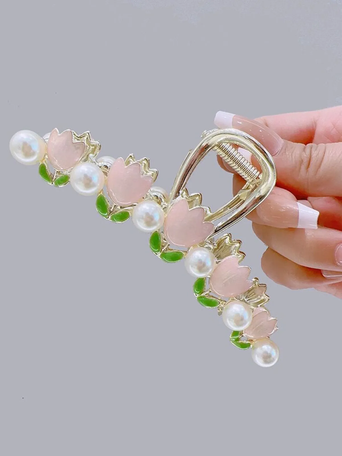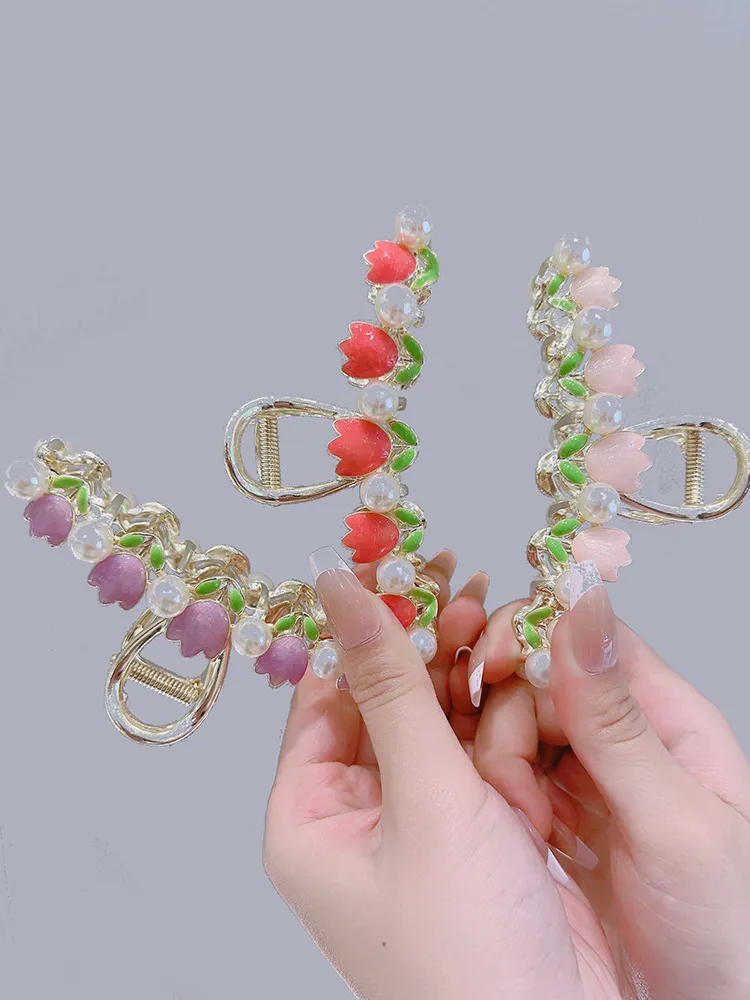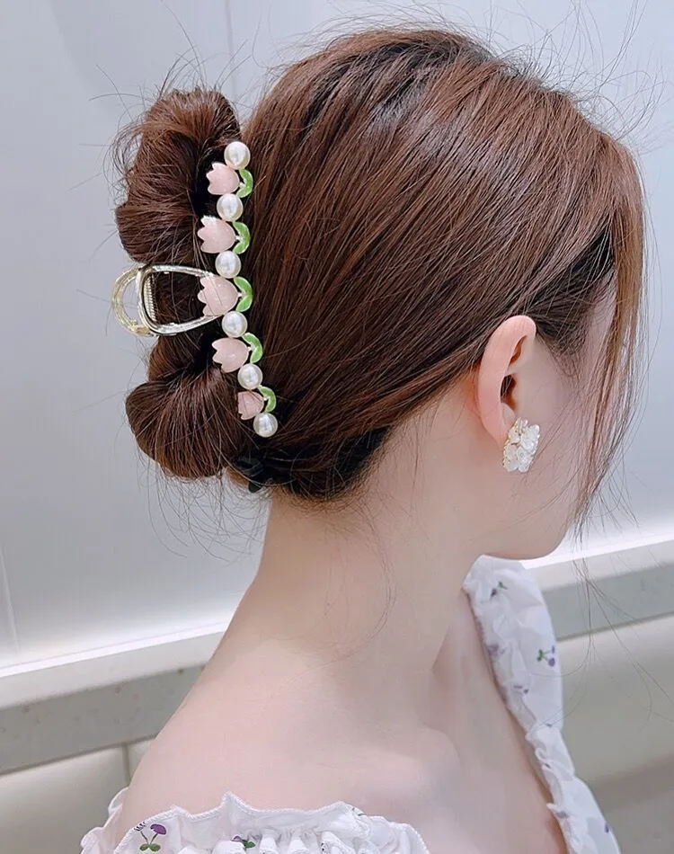 衣都精品- 2023新款超仙氣質珍珠鬱金香鯊魚夾