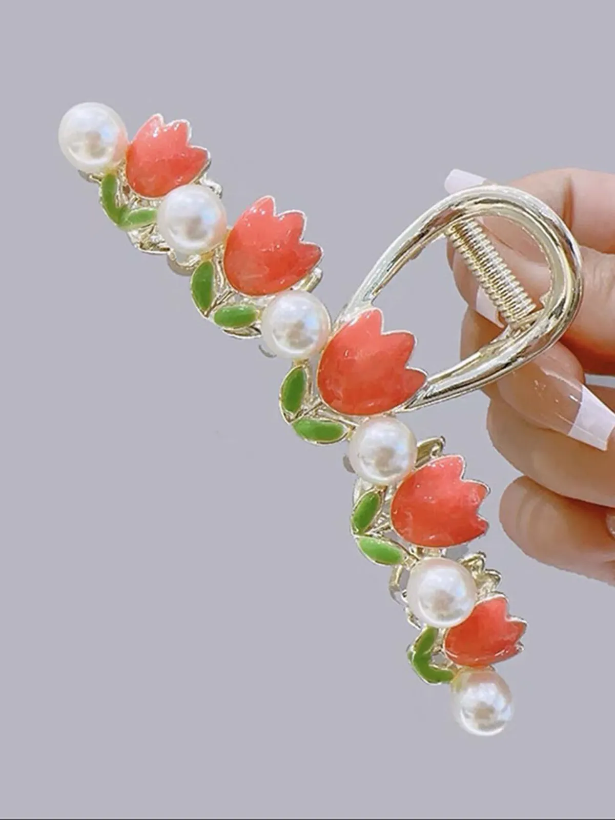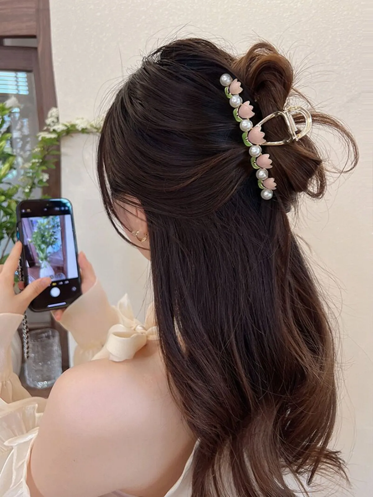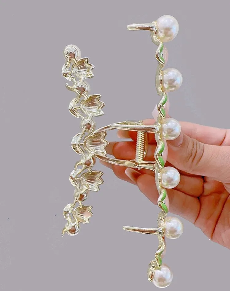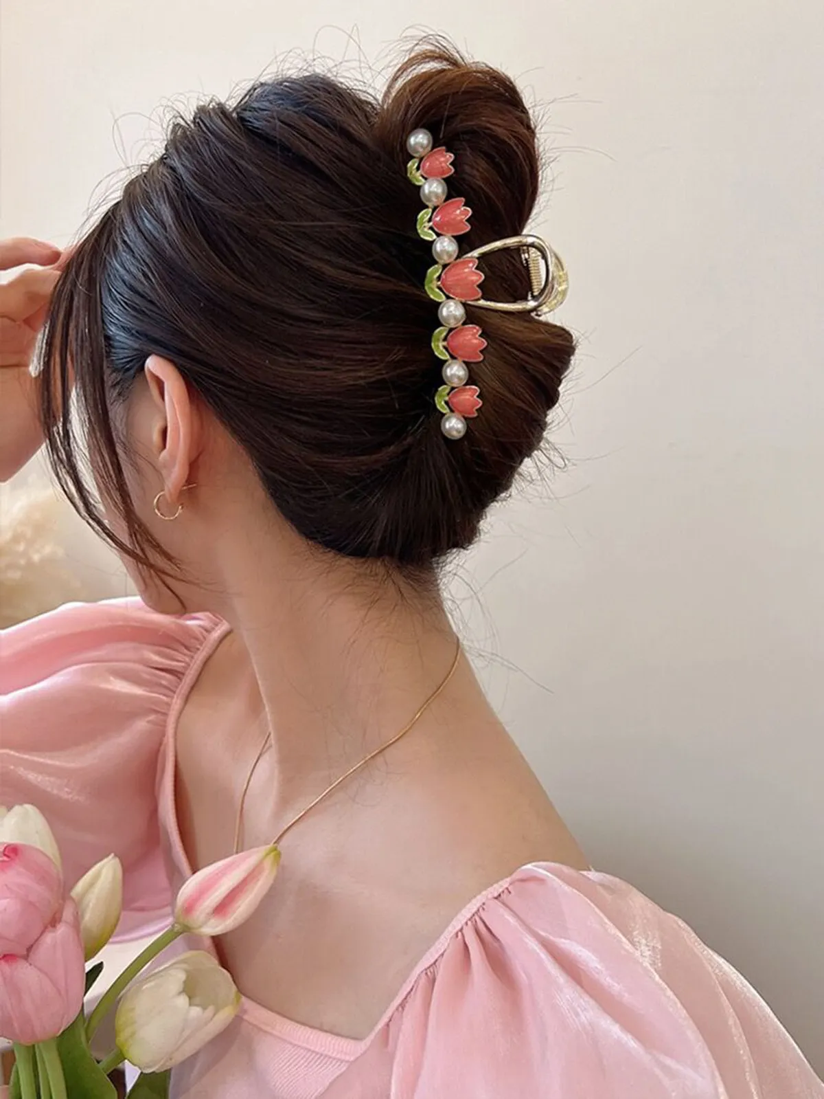 衣都精品- 2023新款超仙氣質珍珠鬱金香鯊魚夾