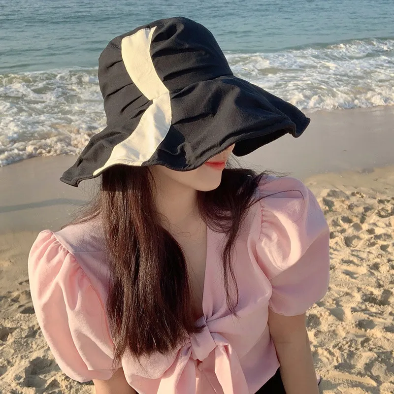 衣都精品- 2023新款韓版百搭拼色大沿遮陽防曬太陽帽