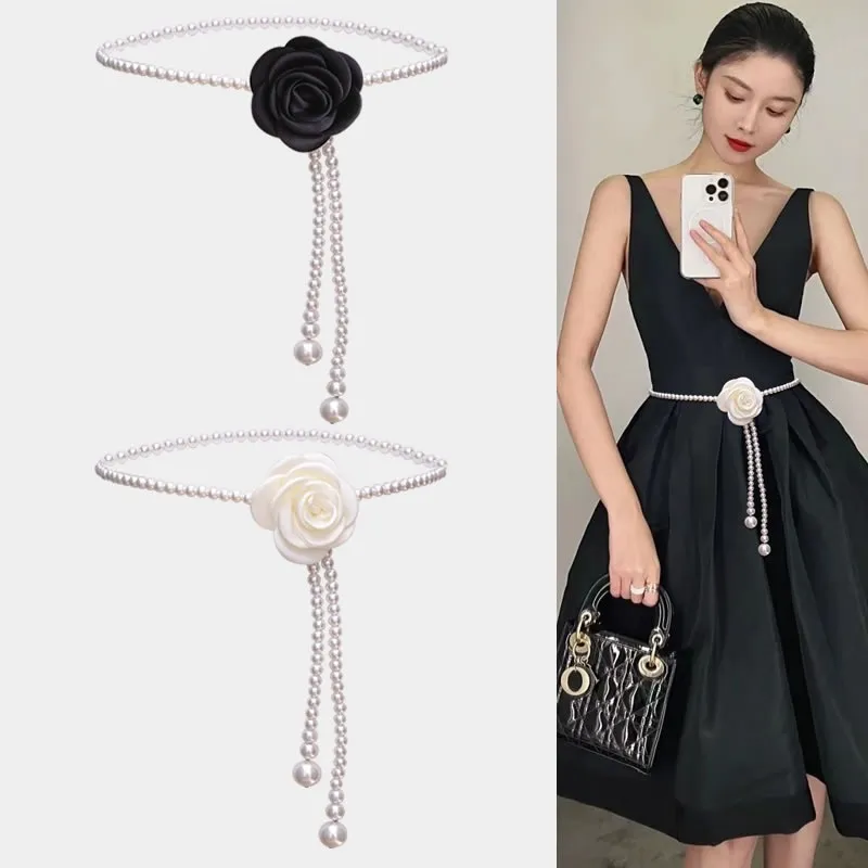 衣都精品- 2023新款小香風山茶花珍珠腰鍊腰帶