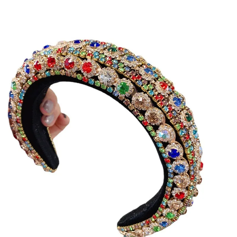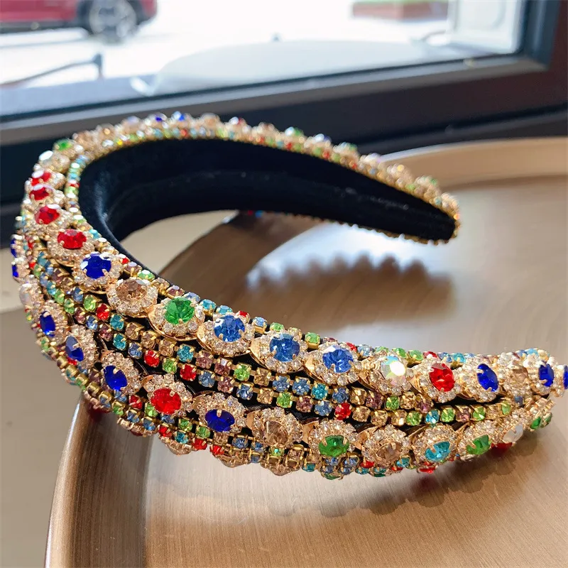 衣都精品- 2023新款歐美重工復古彩色水鑽髮箍