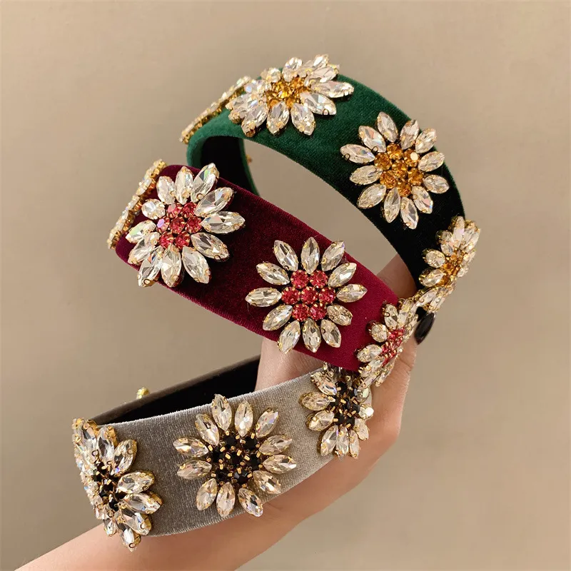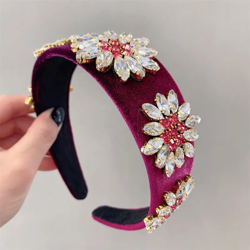 衣都精品- 2023新款韓國輕奢秋絲絨花朵水鑽髮箍