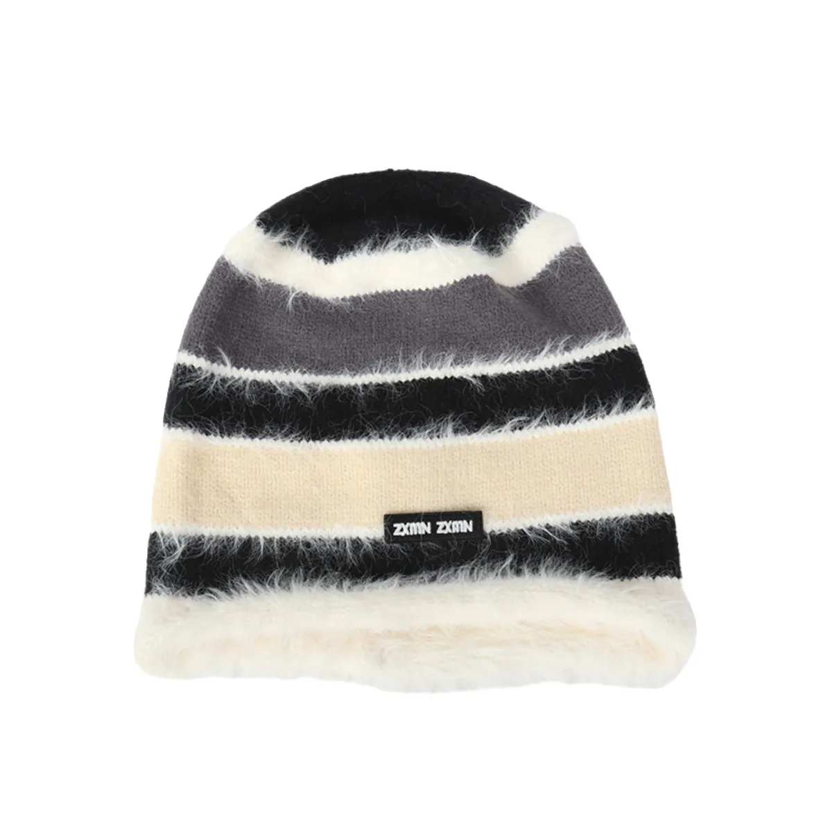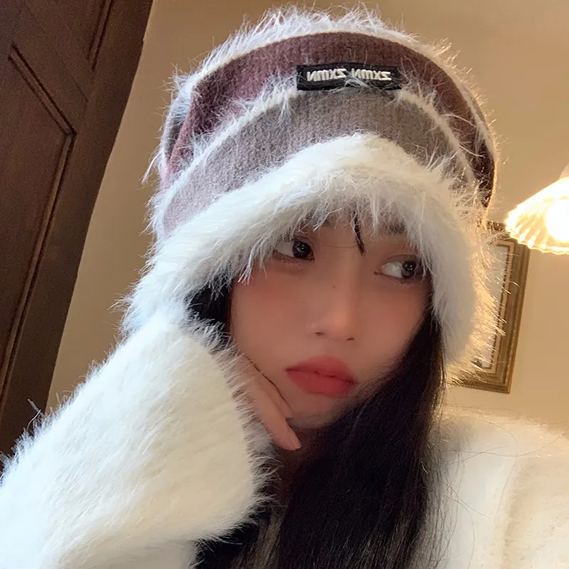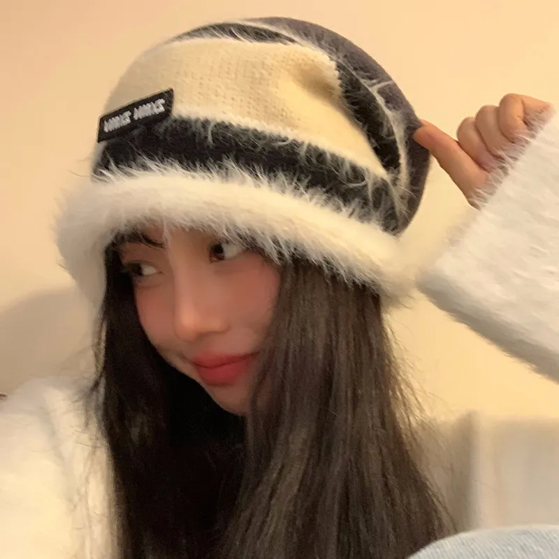 衣都精品- 2023新款小眾撞色條紋保暖護耳毛線帽
