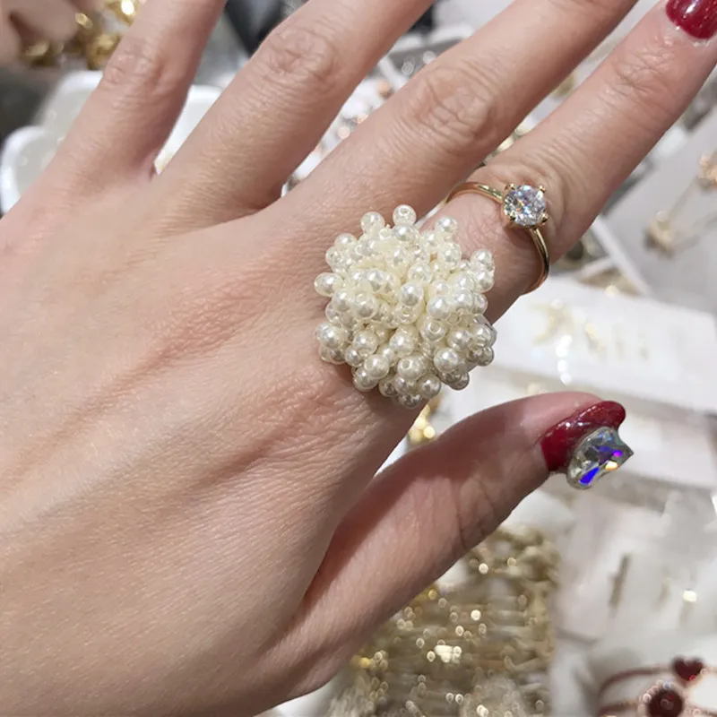 衣都精品- 2023新款時尚珍珠編織加鑽戒指
