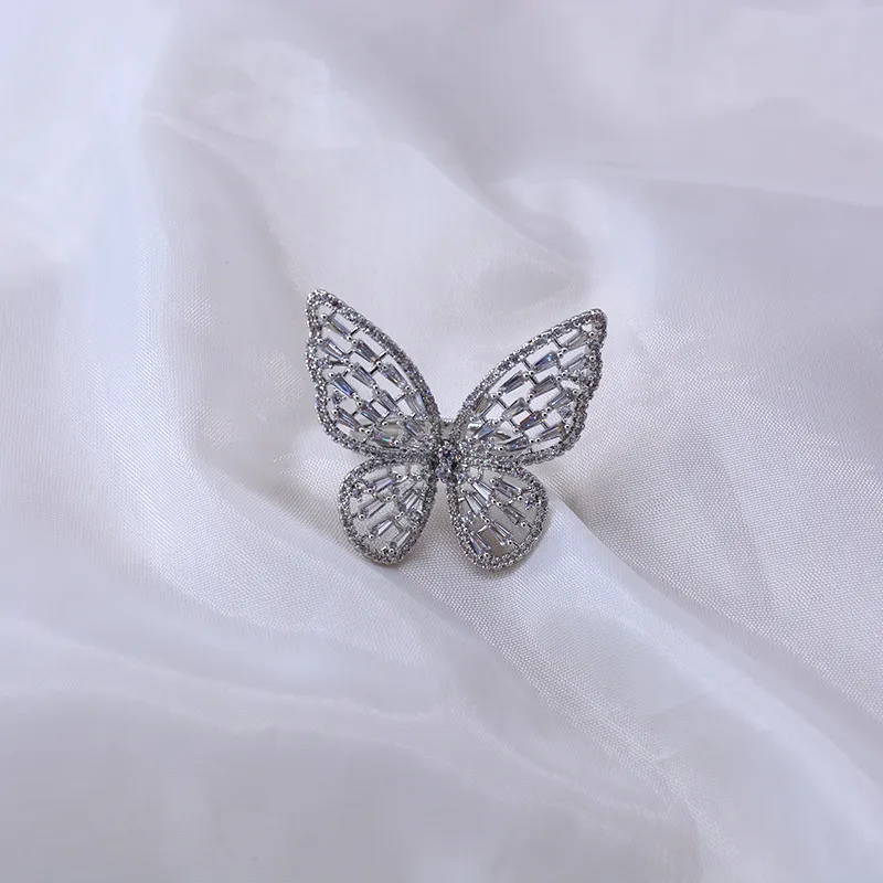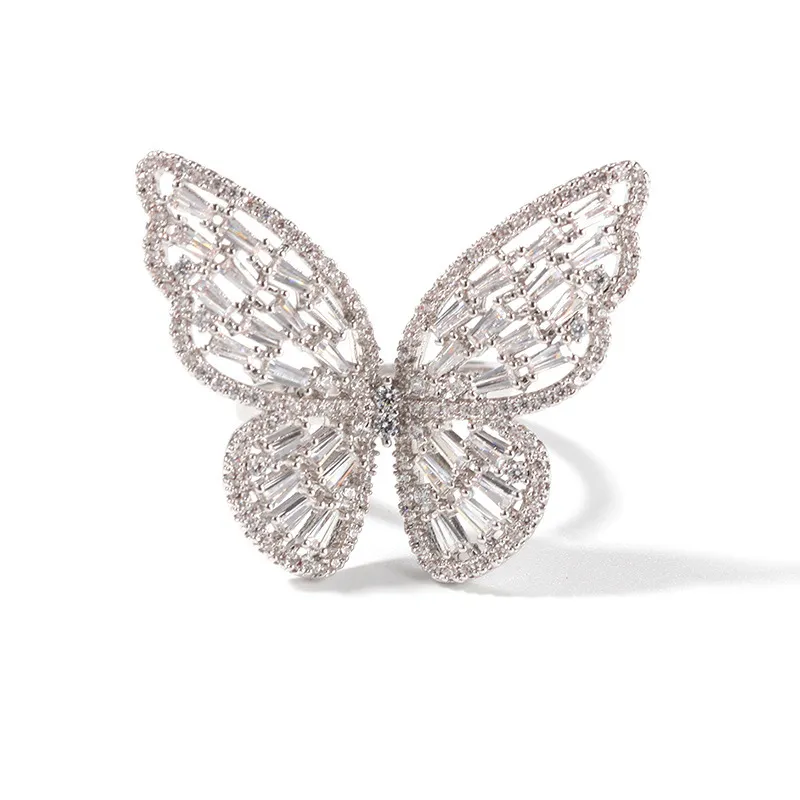 衣都精品- 2023新款歐美鏤空微鑲鋯石玫瑰金蝴蝶戒指