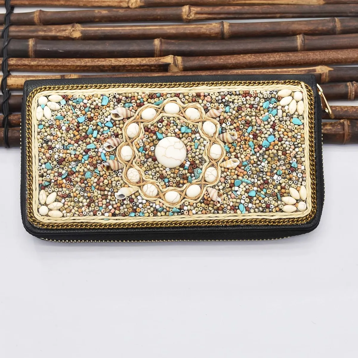 衣都精品- 2023新款民族風手工製作米珠貝殼手拿包