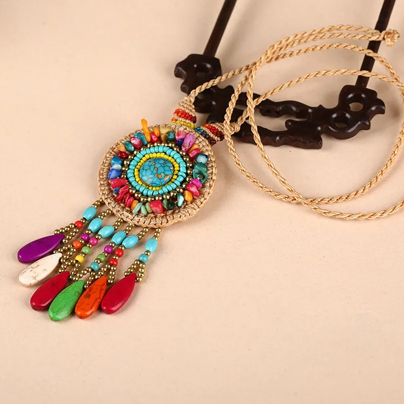 衣都精品- 2023新款民族風紅色松石葉流蘇項鍊
