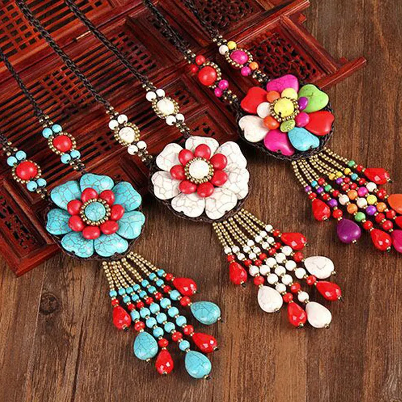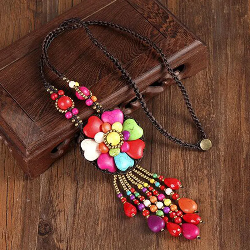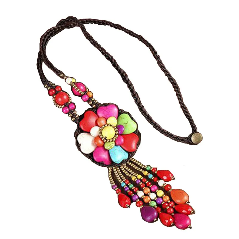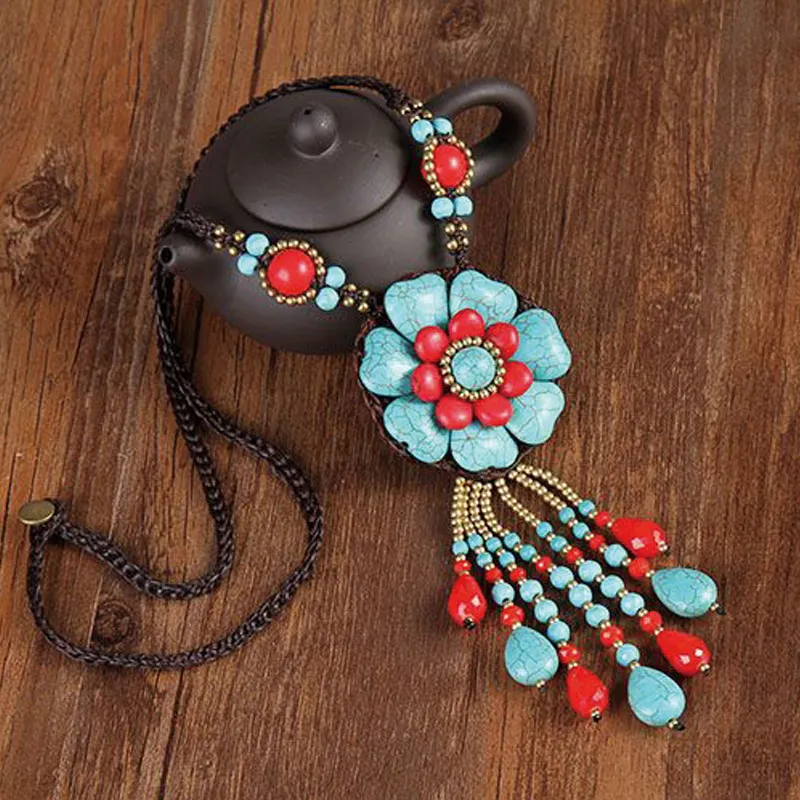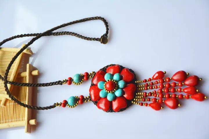 衣都精品- 2023新款民族風紅色松石葉流蘇項鍊