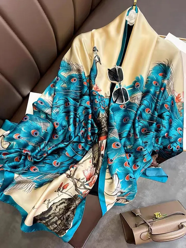 衣都精品- 2023新款絲質洋氣圍巾披肩兩用防曬真絲絲巾