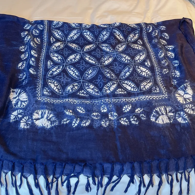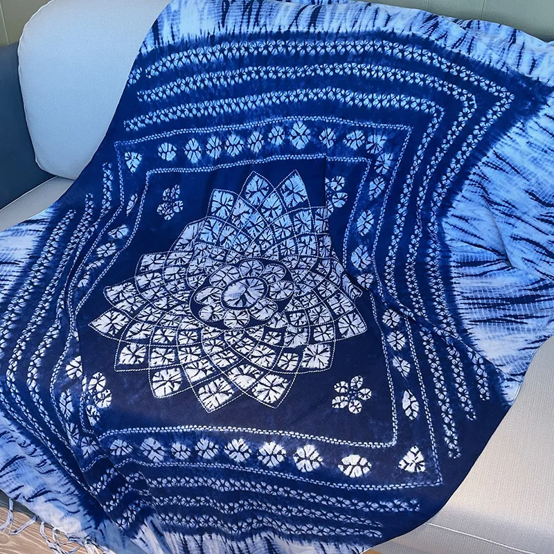 衣都精品- 2023新款民族風蠟染藍染流蘇工藝棉圍巾