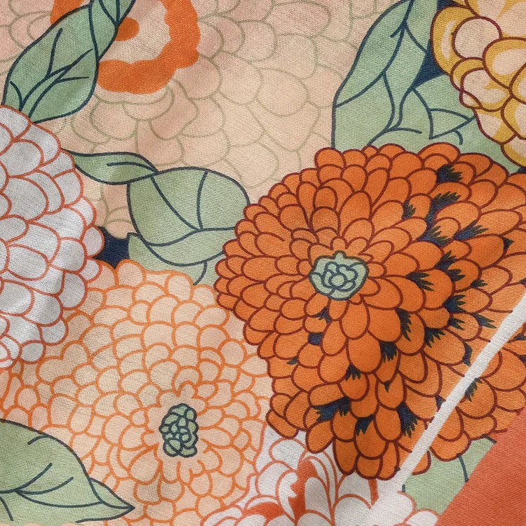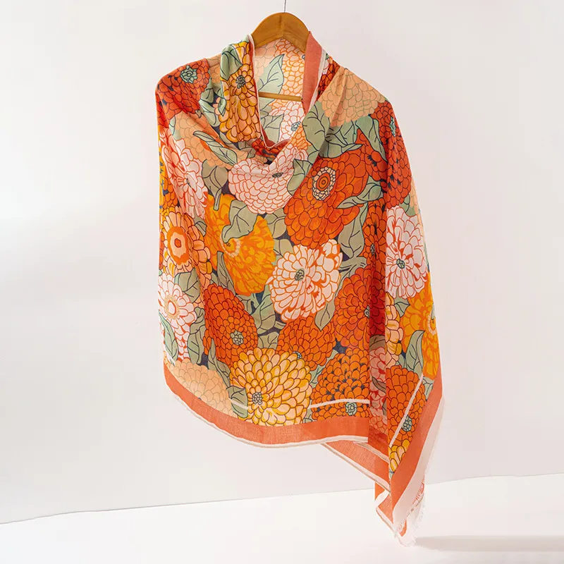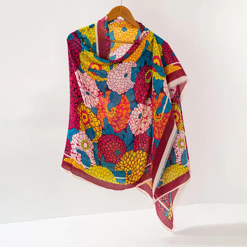 衣都精品- 2023新款膚白度假風印花靚麗花朵棉麻圍巾