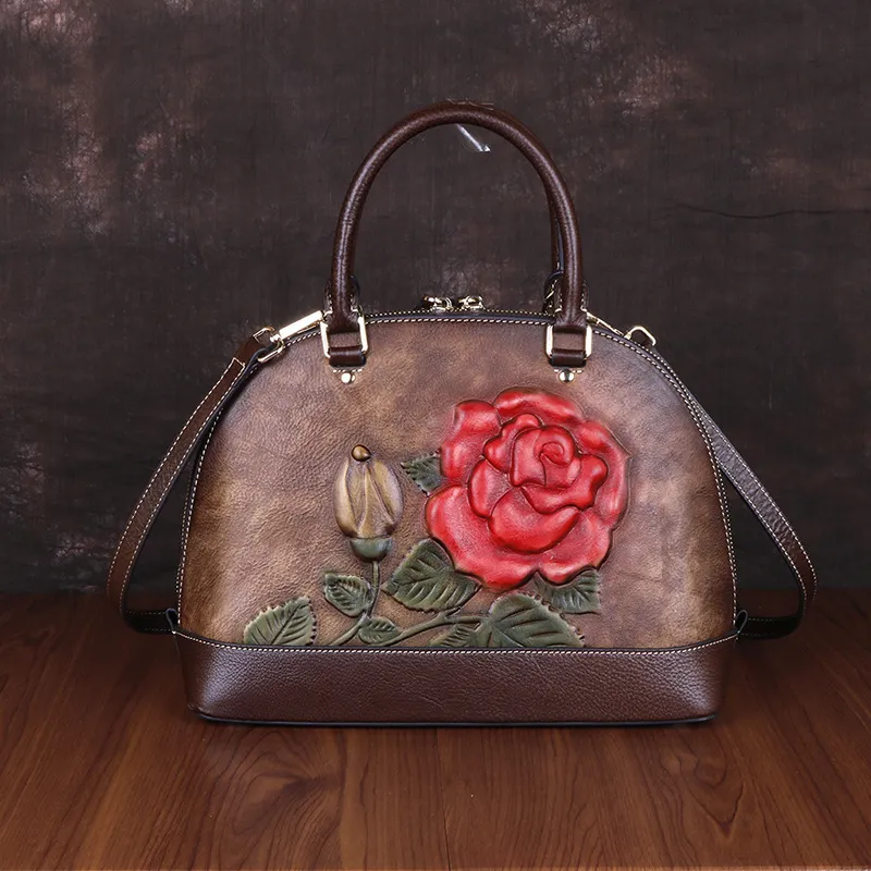 衣都精品- 2023新款中國風玫瑰壓花單肩手提包
