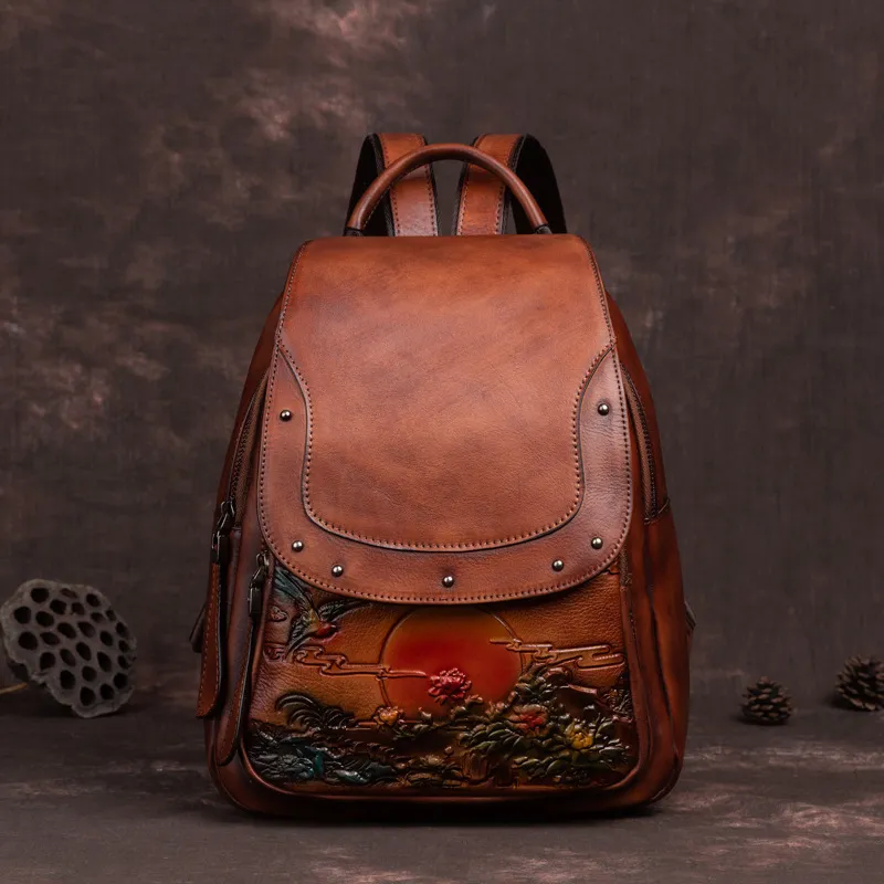 衣都精品- 2023新款復古壓花大容量雙肩背包