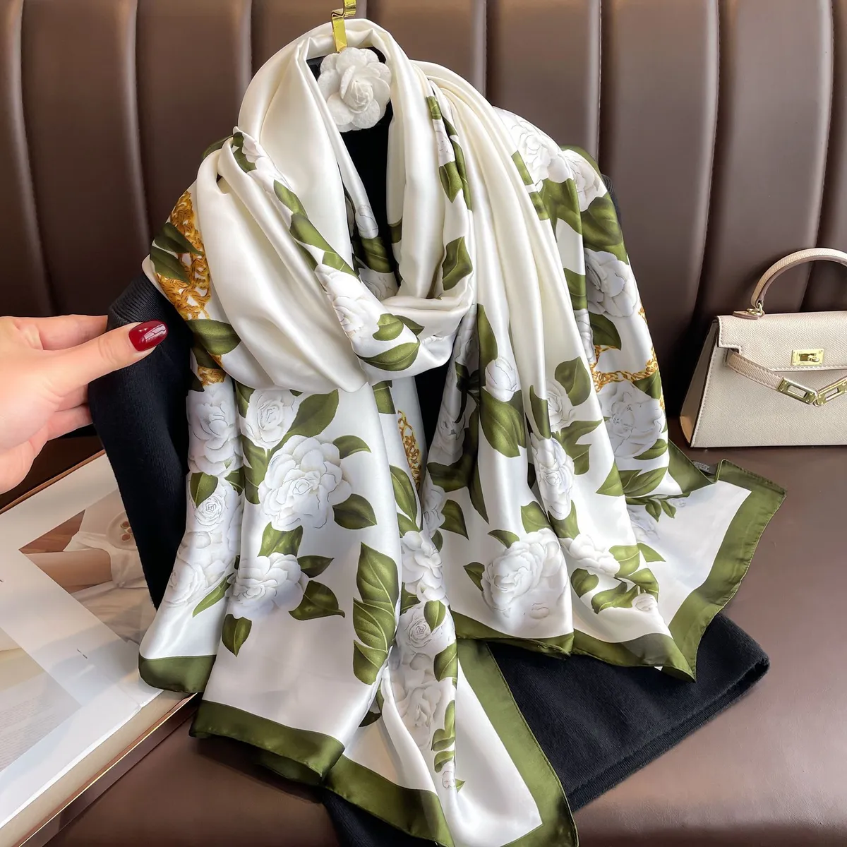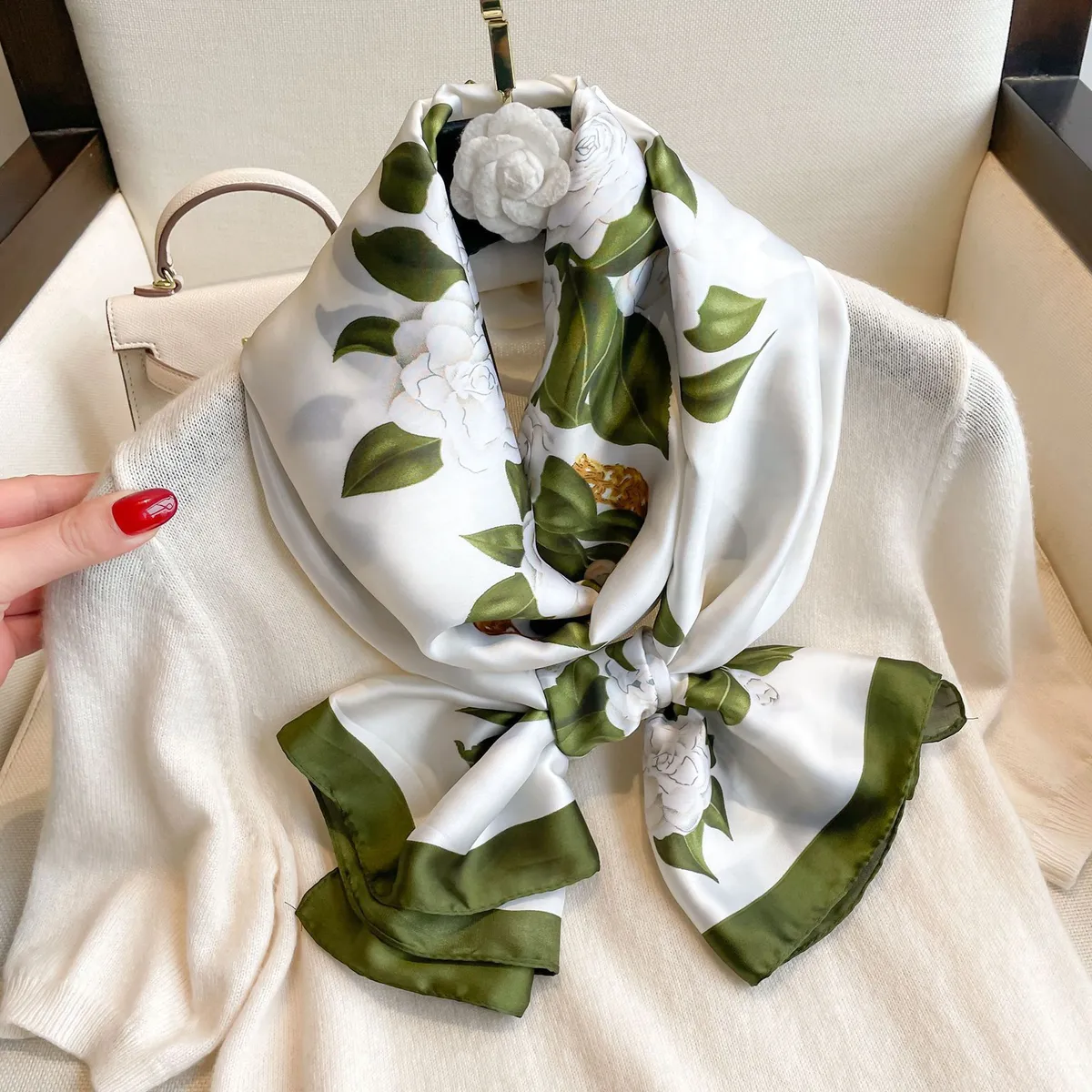 衣都精品- 2023新款時尚麗錦鍛山茶花印花絲巾