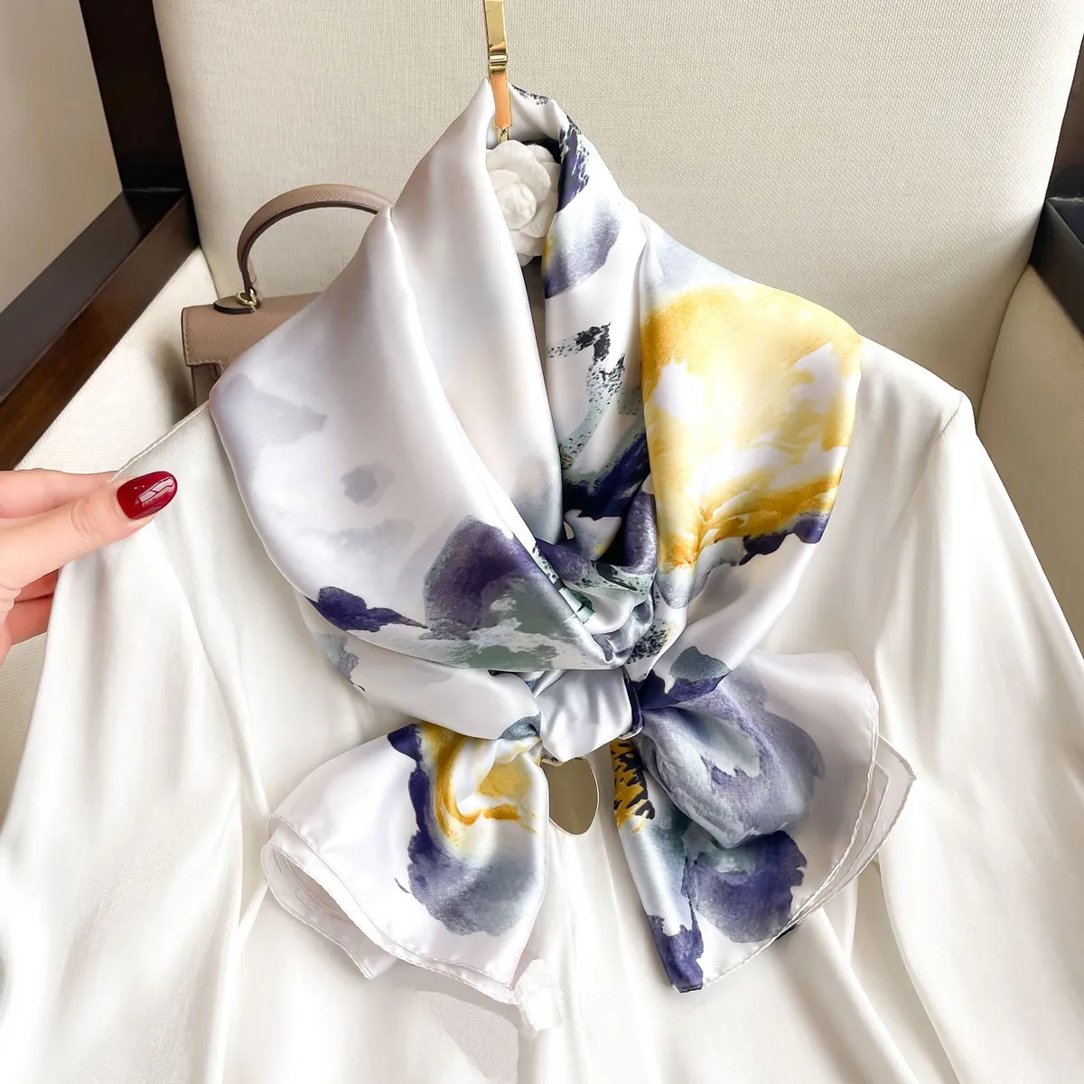 衣都精品- 2023新款時尚麗錦鍛雪蓮花印花清新絲巾