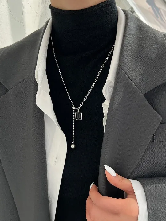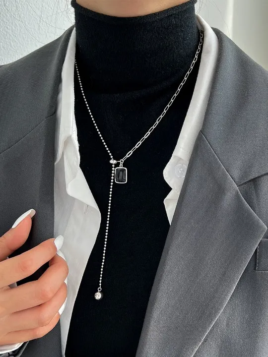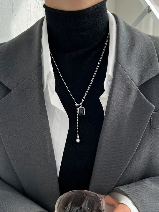 衣都精品- 2023新款韓國方形黑鑽可調式嘻哈項鍊
