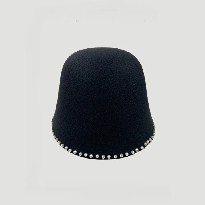 衣都精品- 2023新款網紅款輕奢珍珠羊毛呢漁夫帽