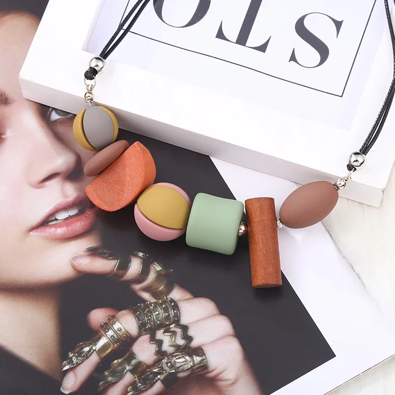衣都精品- 2023新款復古民族風木質裝飾毛衣鏈