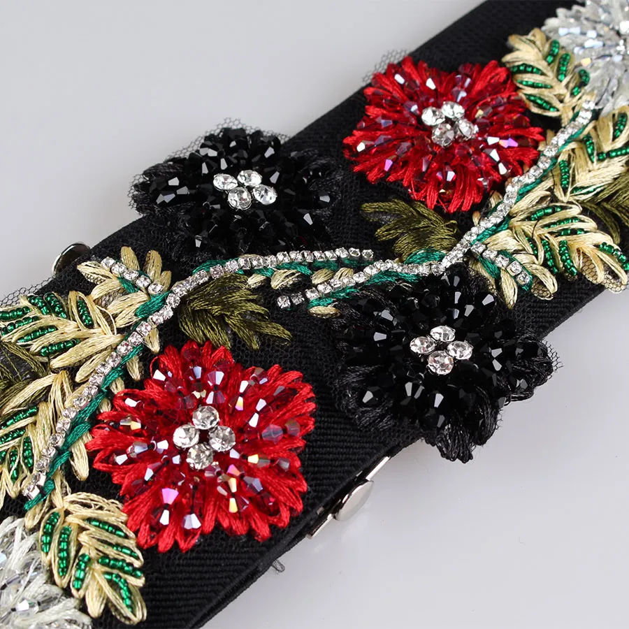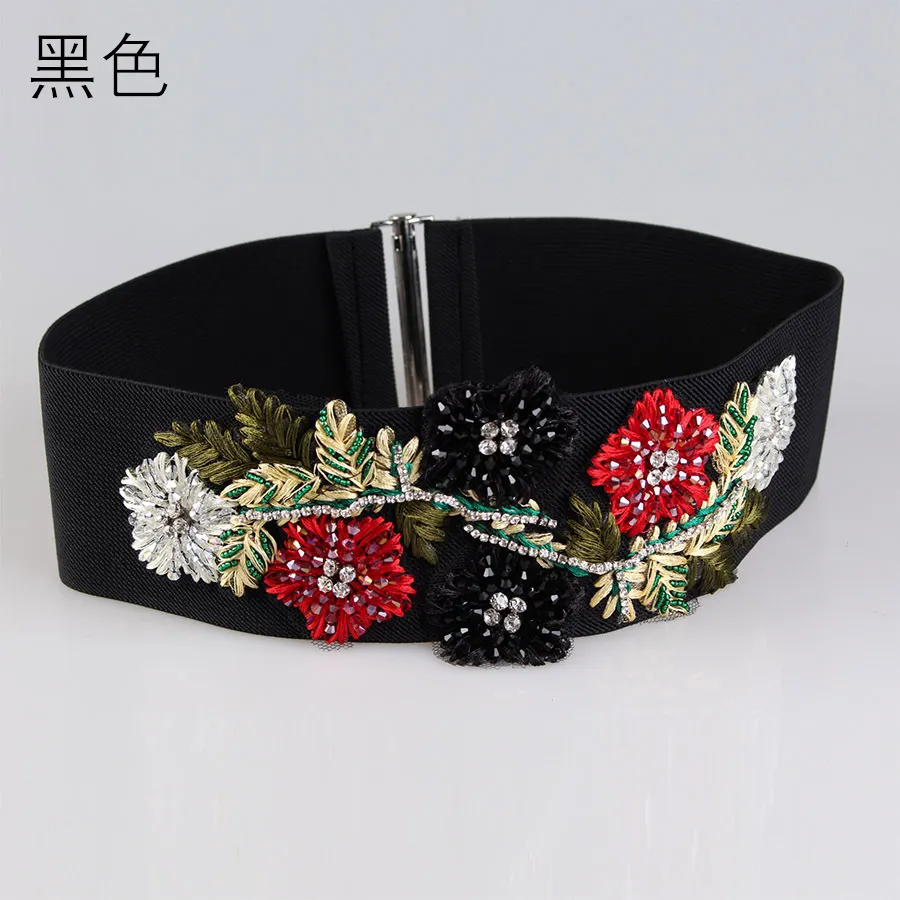衣都精品- 2023新款民族風鬆緊腰手工串珠花朵腰帶