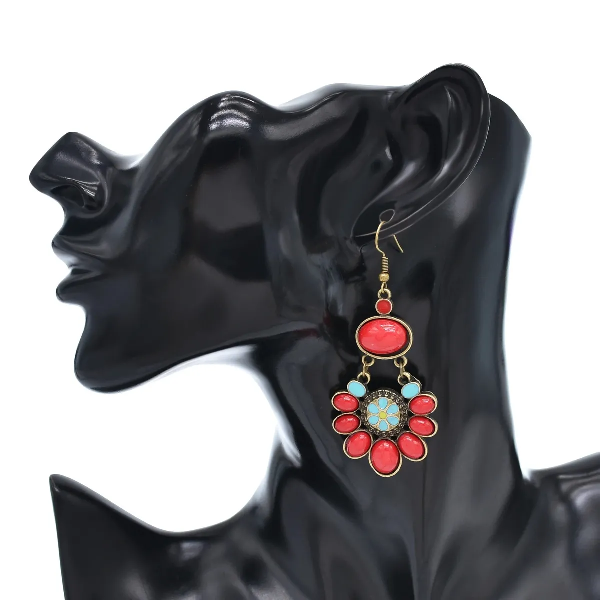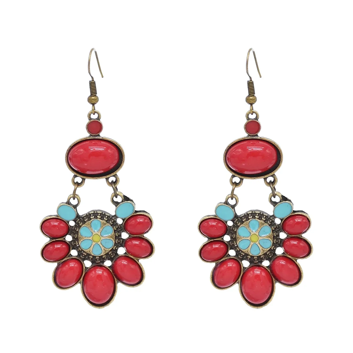 衣都精品- 新款民族風滴油紅色花朵耳環