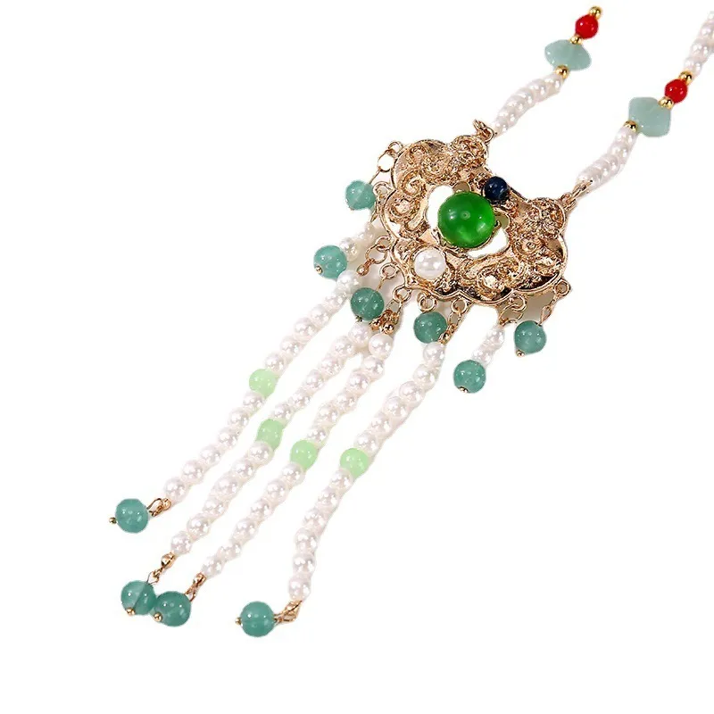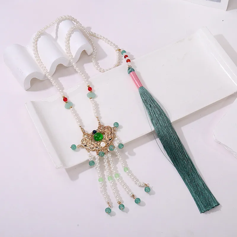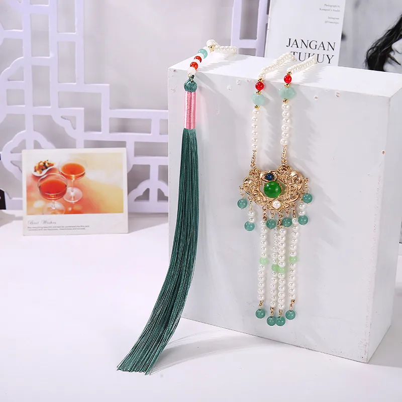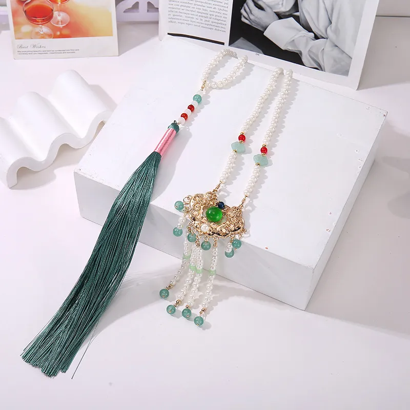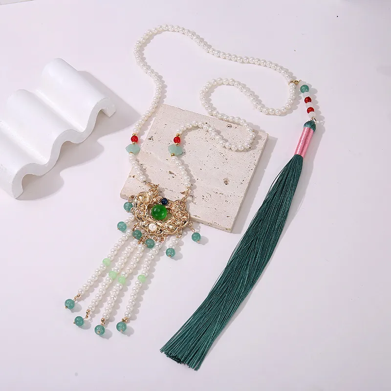衣都精品- 新款復古吊墜流蘇珍珠立領長款平安扣項鍊