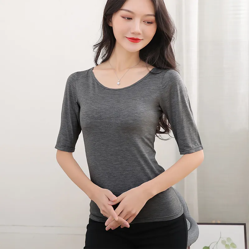 衣都精品- 新款時尚簡約顯瘦圓領莫代爾打底衫