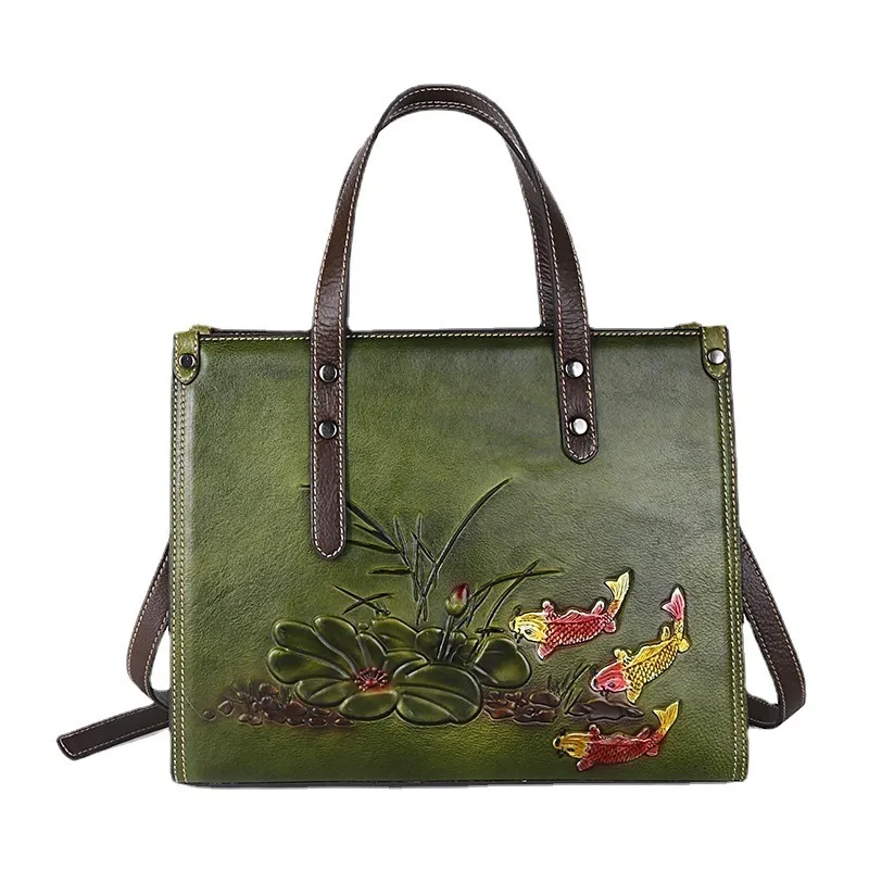 衣都精品- 新款頭層牛皮大容量上色壓花工藝托特包