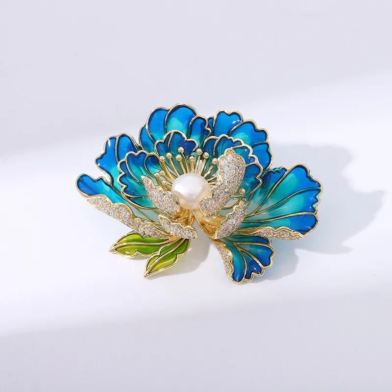 衣都精品- 新款高級流粉色牡丹花珍珠胸針