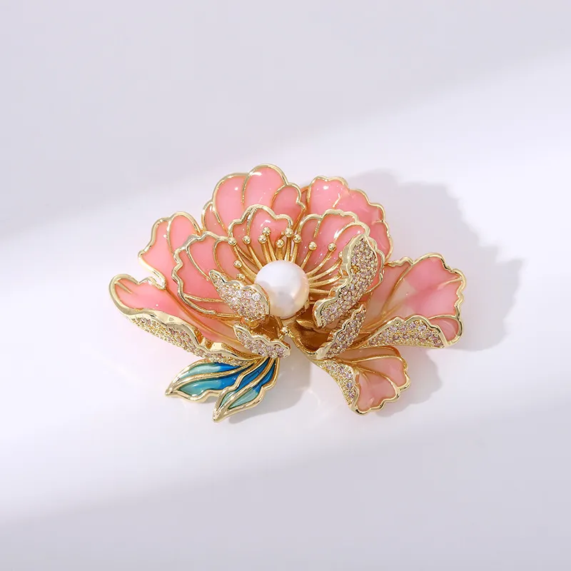 衣都精品- 新款高級流粉色牡丹花珍珠胸針