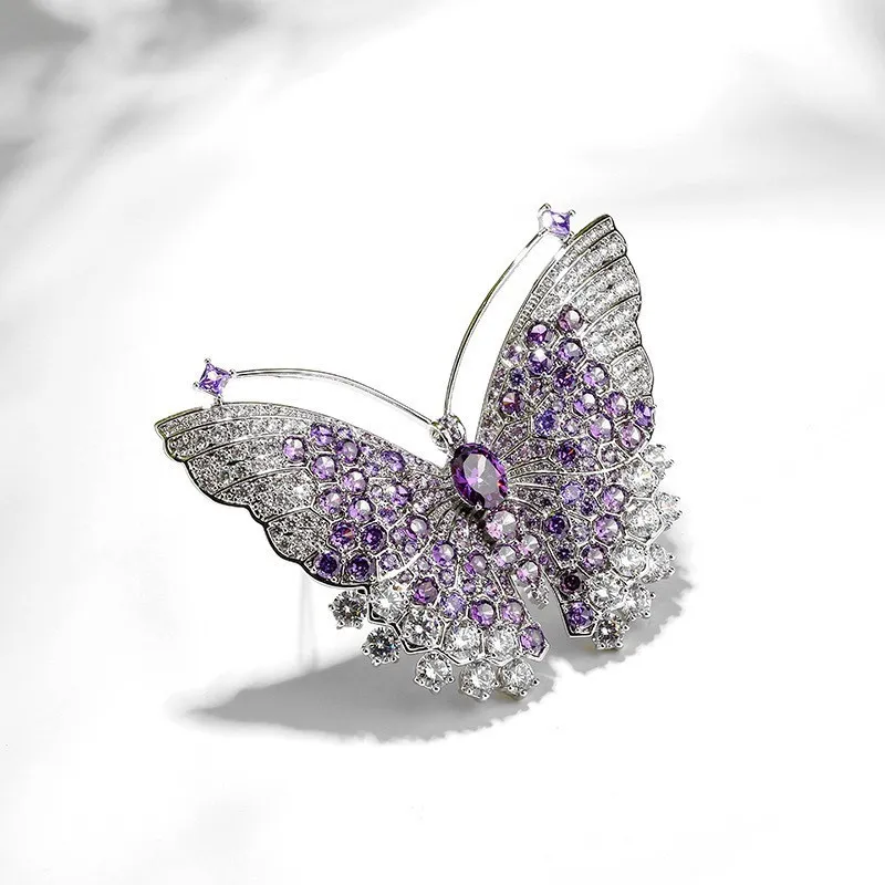衣都精品- 新款歐美貴族風彩色蝴蝶鋯石胸針