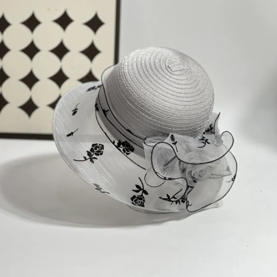 衣都精品- 新款戶外百搭雙花半卷邊透氣草帽