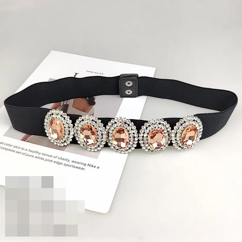 衣都精品- 新款彩色玻璃鑽彈性高品質鑲鑽腰帶