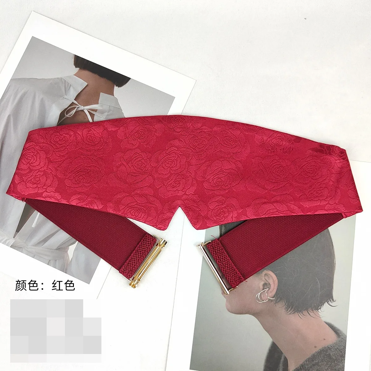 衣都精品- 新款玫瑰花印花彈力插扣鬆緊寬腰封