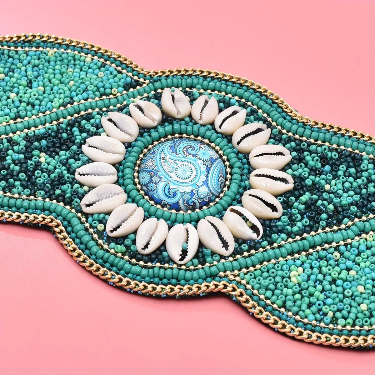 衣都精品- 新款復古米珠貝殼少數民族鬆緊束腰帶